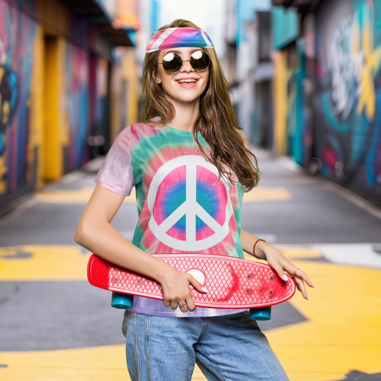 - Fun hippie combo:vibrant peace logo tie dye T-shirt, soft to the touch, comfortable to wear; Hippie handkerchiefs can be used as headbands, hats, scarves, and wrists to attend holiday parties and gatherings.