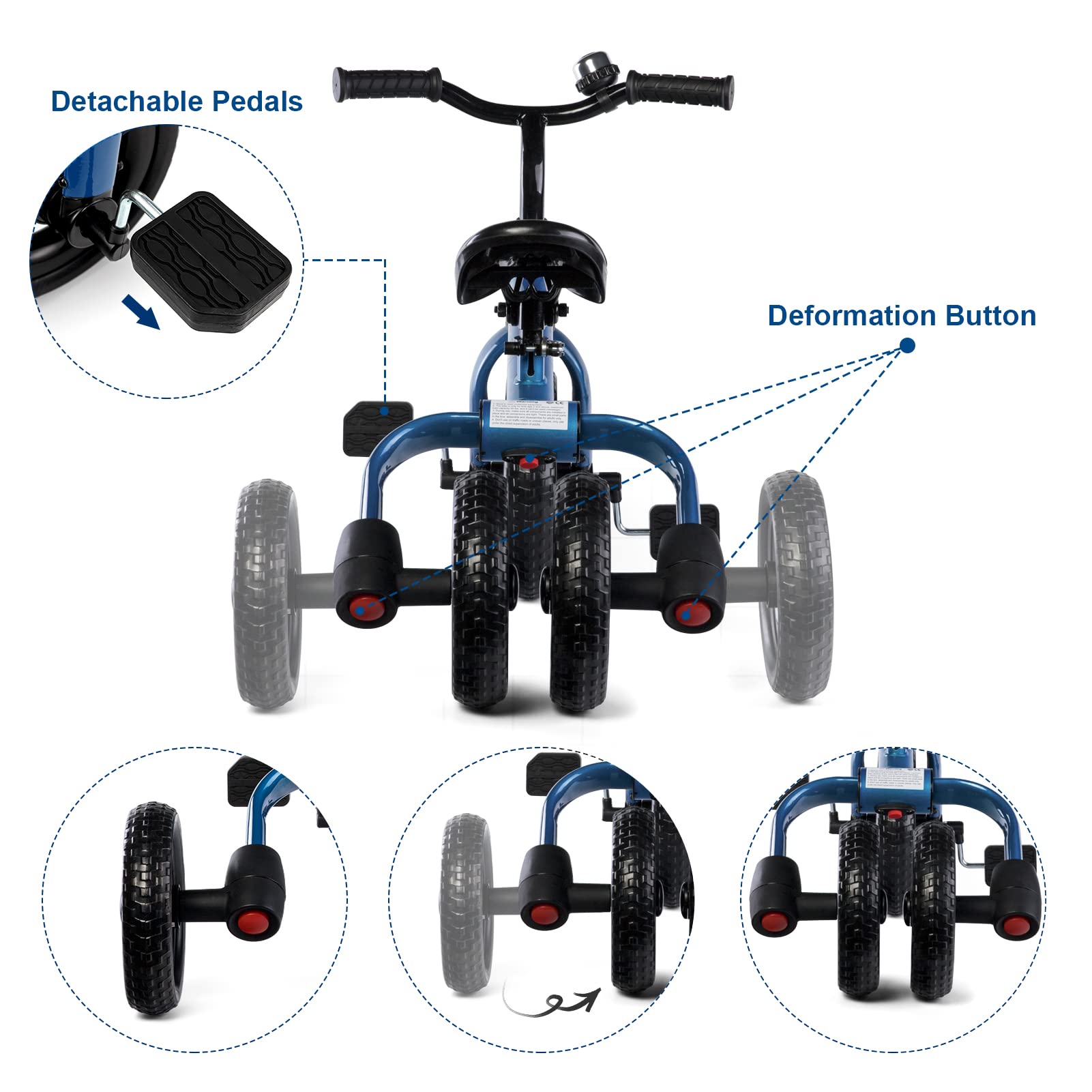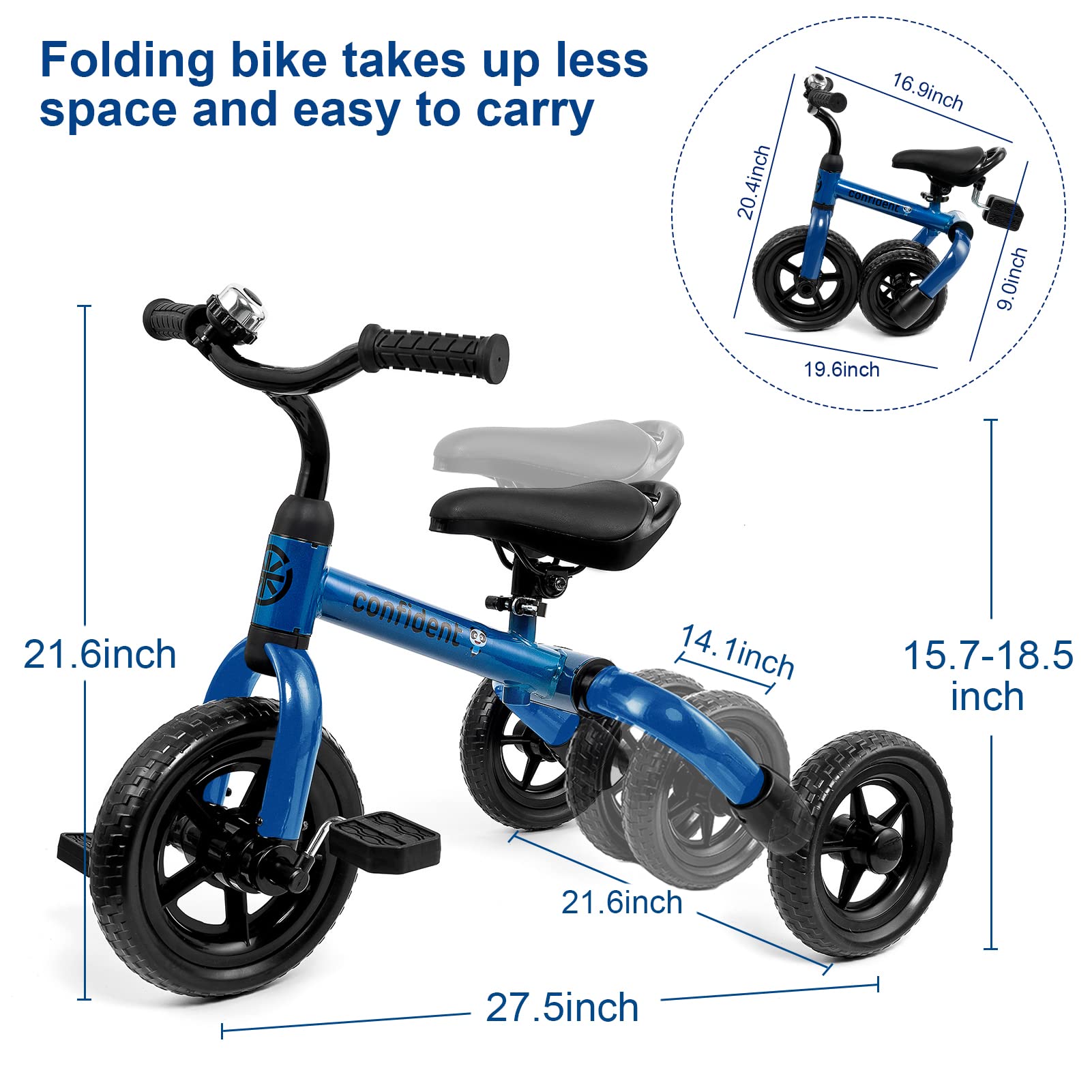 - 🎊Easy to Assemble and Foldable: With clear instructions, you can quickly and easily assemble the 3-in-1 tricycle in just a few minutes. It also folds easily for quick and convenient storage or transportation.