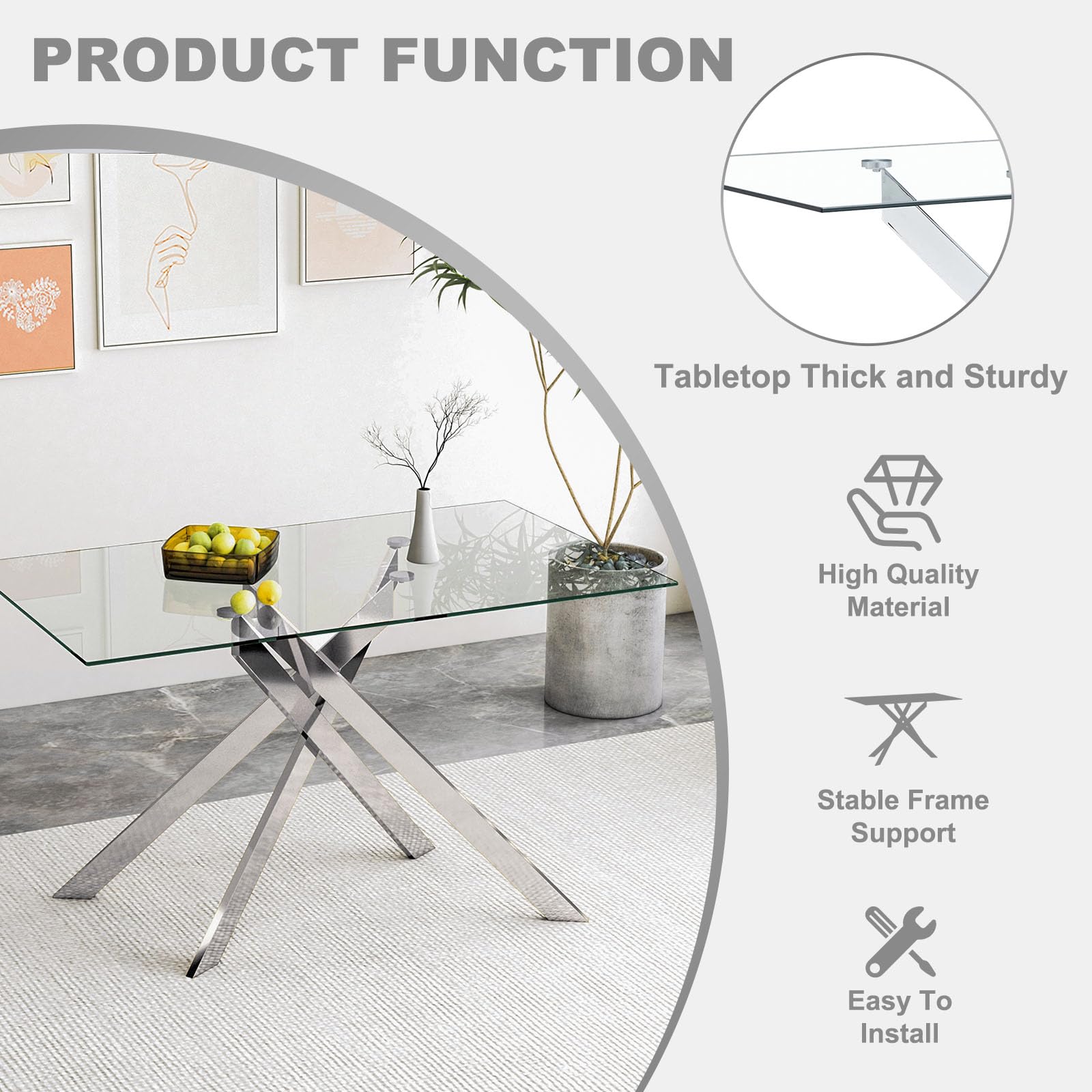 XUNGSUN 51 Inch Glass Dining Table Set for 4, Rectangular Glass Kitchen Table with 4 Upholstered Velvet Accent Chairs, 5 Piece Modern Dining Room Set, for Home, Apartment, Small Spaces - Grey Silver