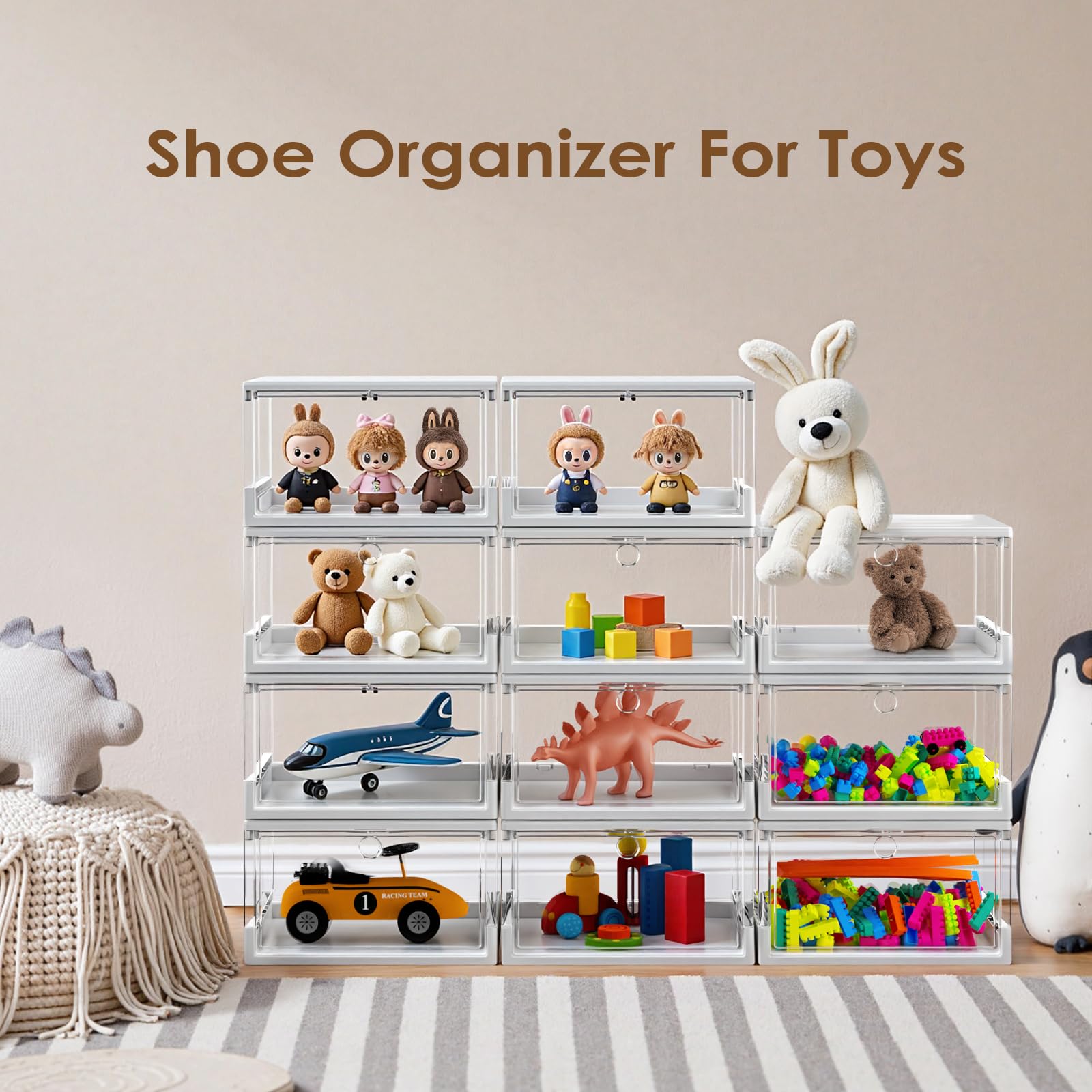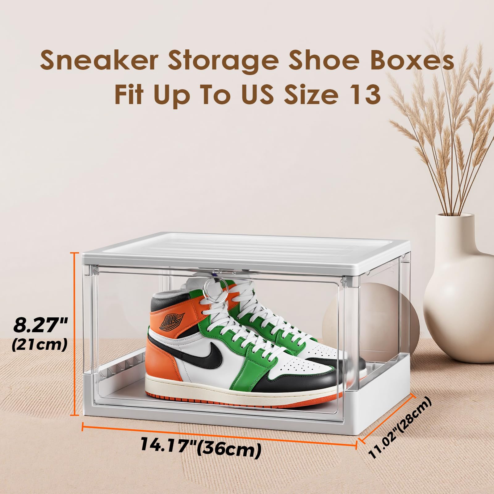 XUPAINC Thicken & Sturdy Clear Shoe Boxes with Magnetic Door, 12 Pack Stackable Boxes for Closet, Sneaker Storage for Sneakerhead, Shoe Display Case, Boots and Hat Organizer, Fits US Size 13