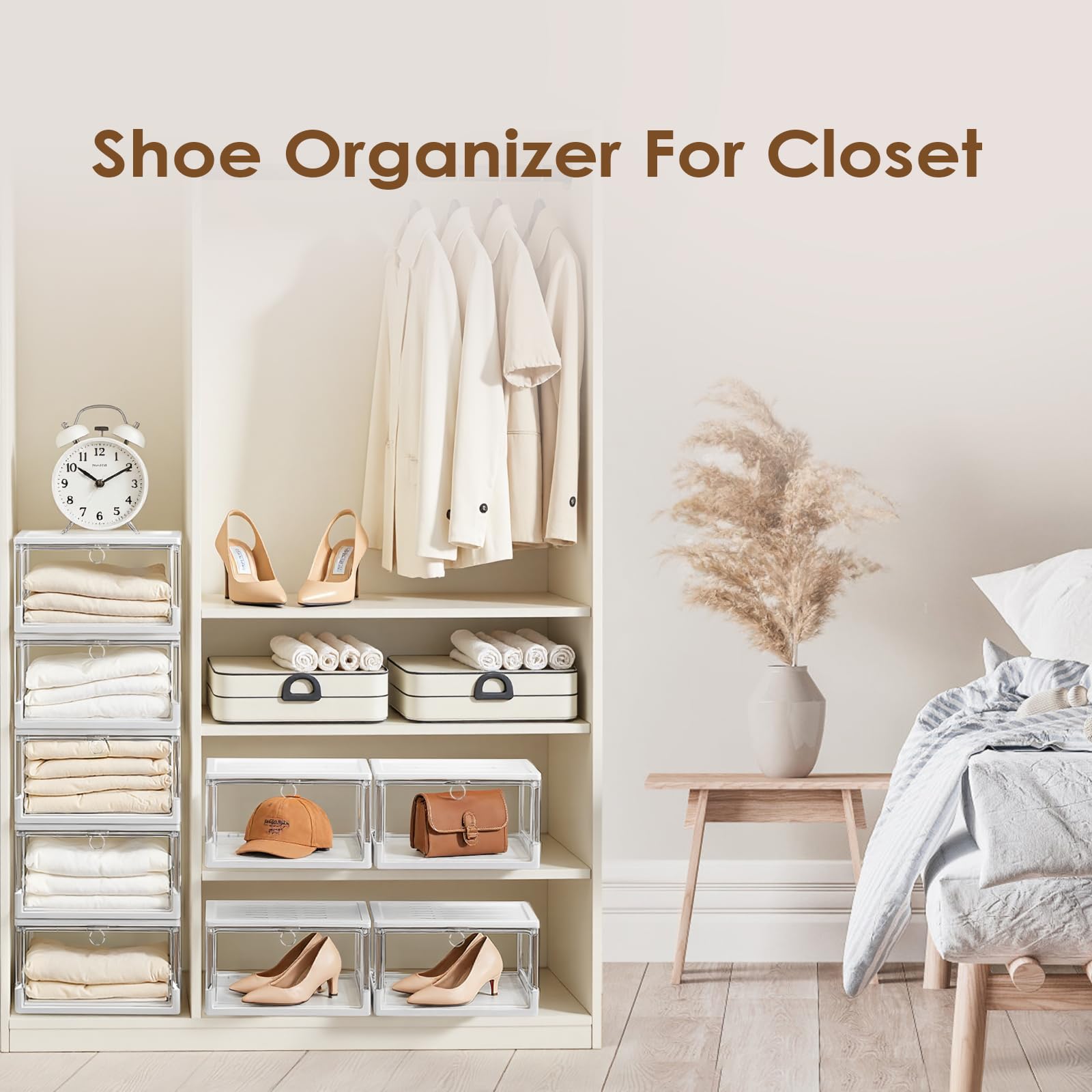 - Clear Shoe Storage Boxes Stackable: Stack 'em like a Jenga master—12 layers high, zero collapses! These sneaker storage stackable bins are the Tetris champions of your closet. Max vertical space, min floor drama. Your shoes? Organised. Your cat? I am mildly impressed.