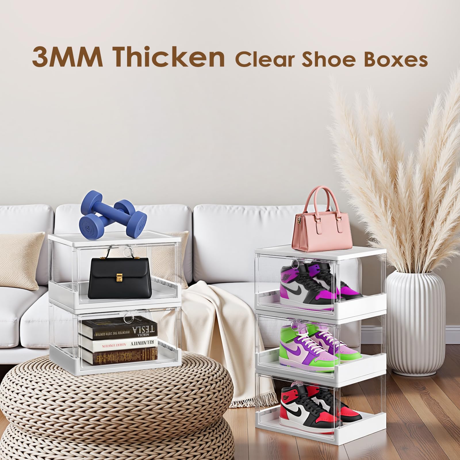 - 3MM Thicken Clear Shoe Boxes:Crafted with ultra-thick 3mm panels, tough as steel! The remarkable thickness ensures durability and sturdiness, making the box strong enough to double as a seat. the interlocking design allows for secure stacking, Perfect for storing sneakers, hats, and more, this is truly the "champion" of shoe boxes.