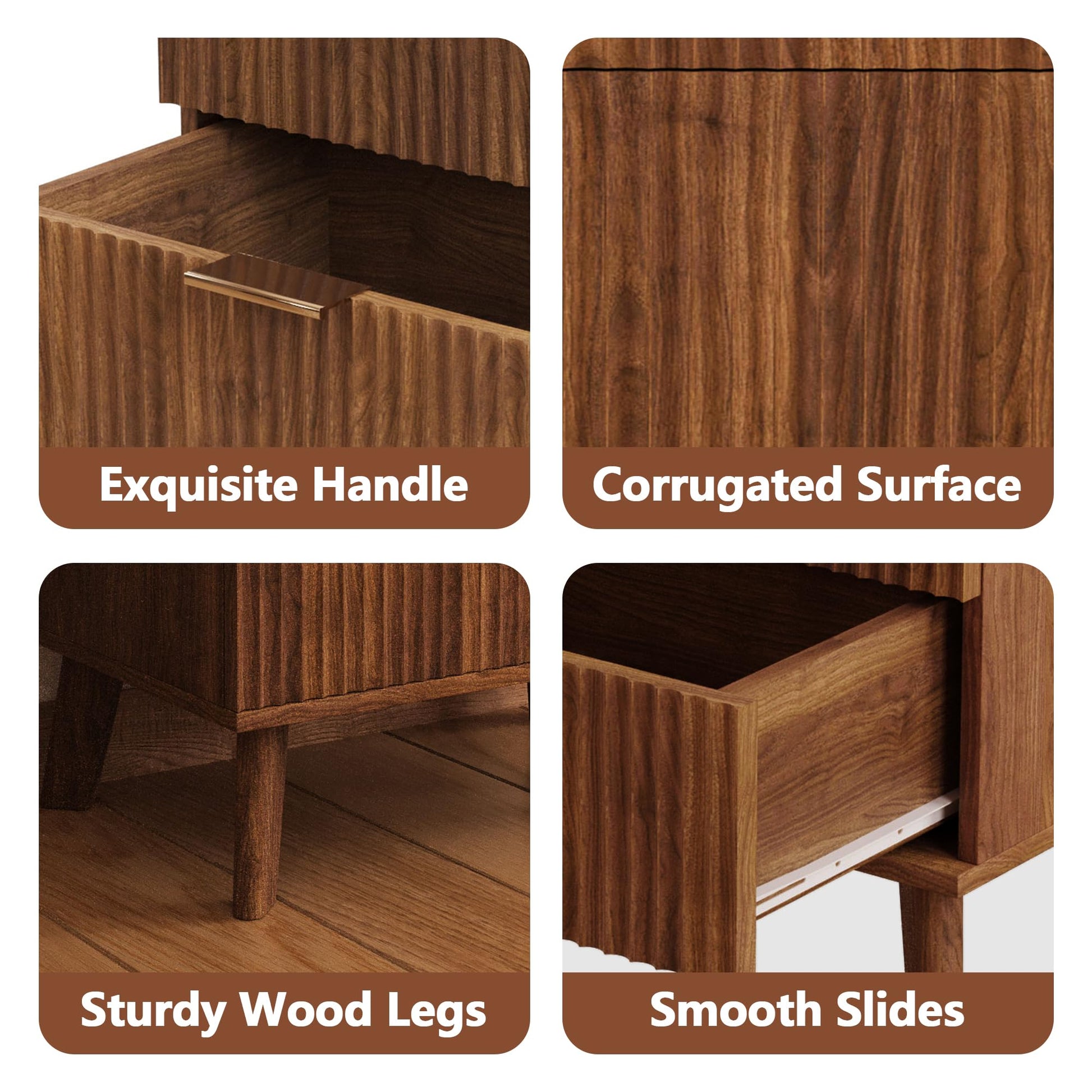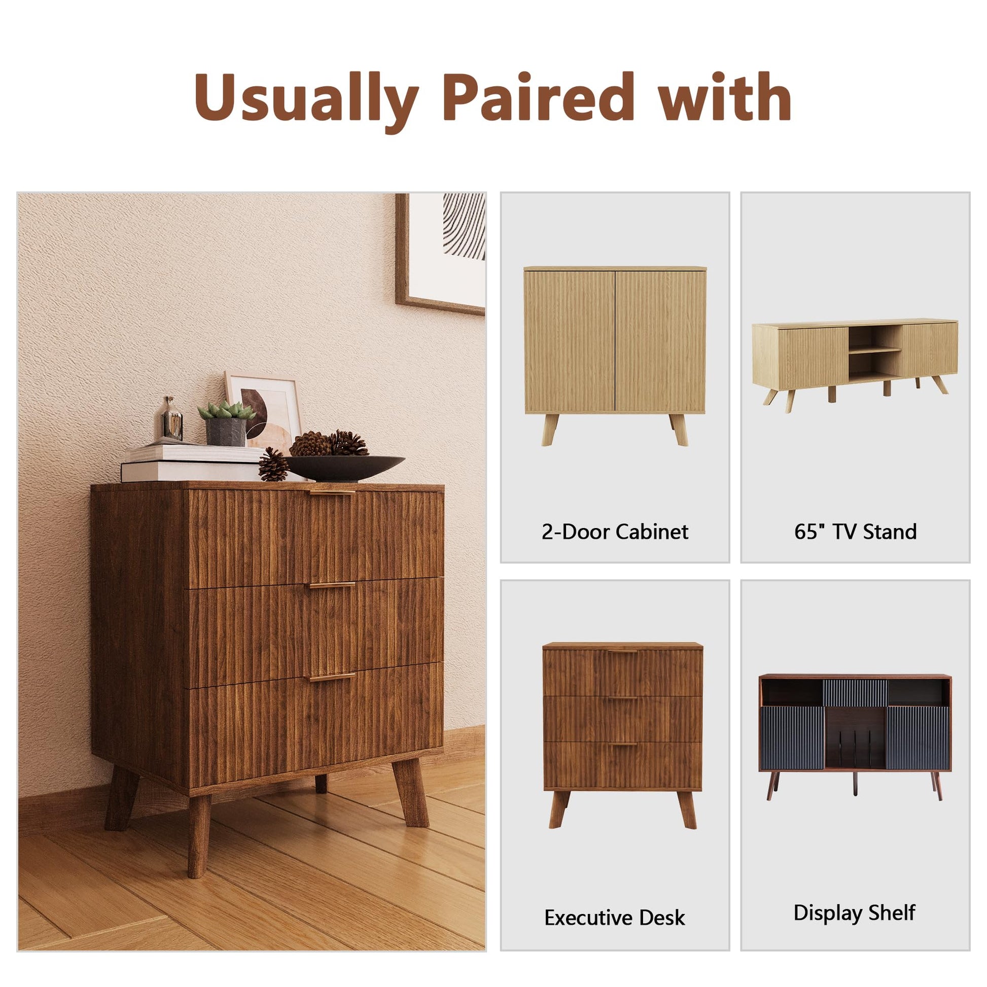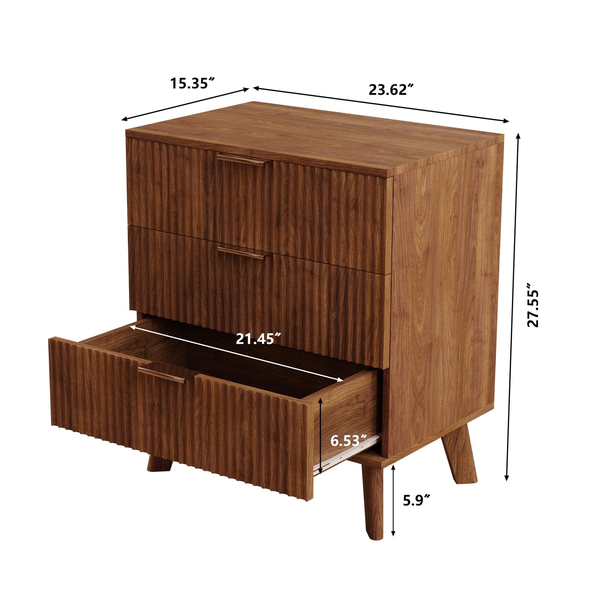 - STYLISH DESIGN: The wood 3 drawers dressers is fabricated through a special technology, the fluted waveform panel with sleek curved profile design is unique and elegant. Complete with aluminum handles, the smooth metal guide rail allows the drawer to be pulled out and closed easily and silently. It provides the drawers with durability to last for a long time