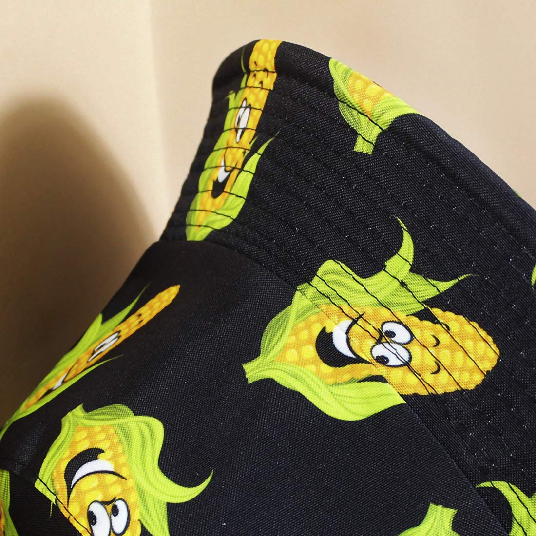 XYIYI Corn Black Print Bucket Hat Fashion Beach Fisherman Hats for Women, Reversible Double-Side-Wear