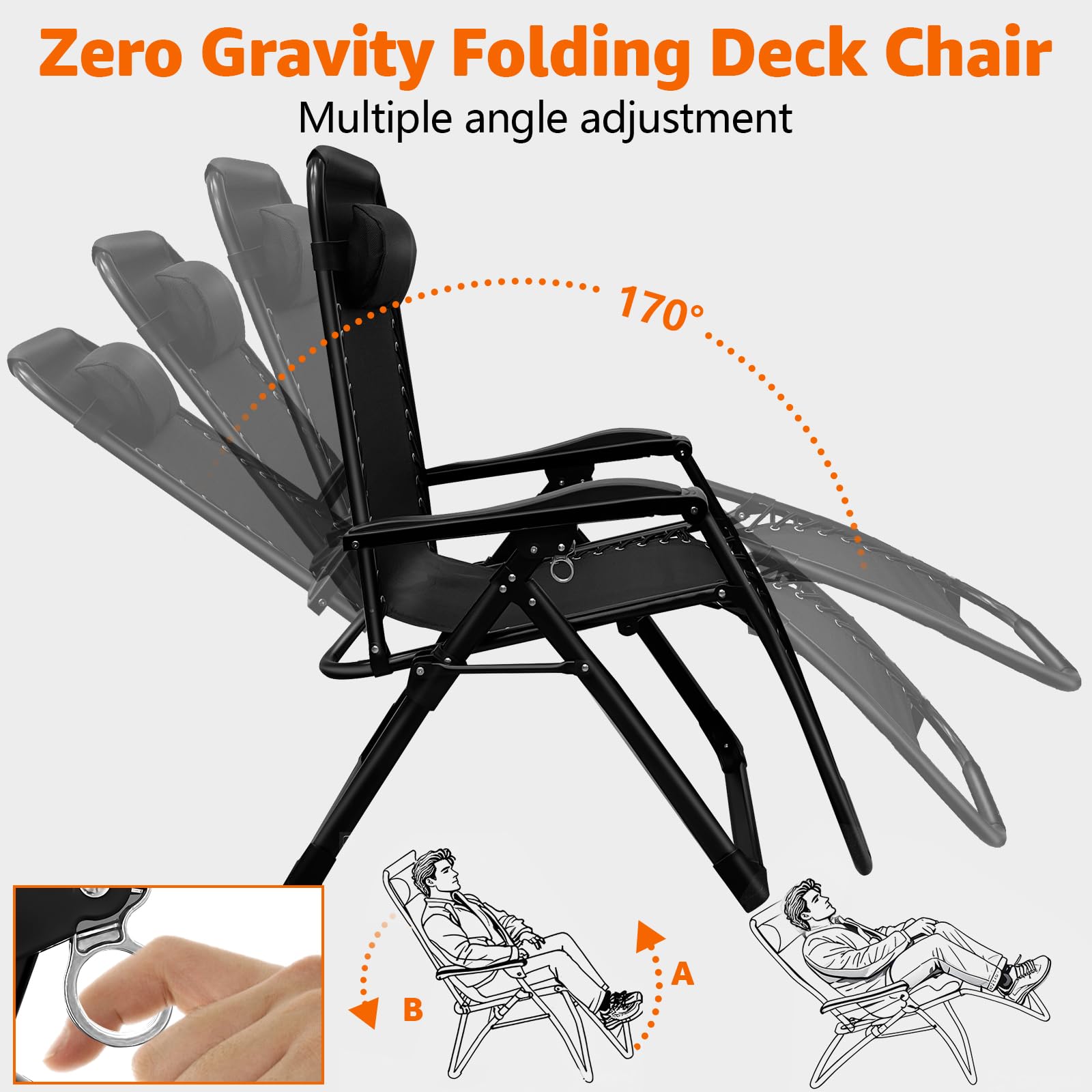 - Unmatched Comfort with Zero - Gravity Design: Our zero - gravity lounge chair offers an ergonomic design that allows you to find the most comfortable lying position effortlessly. Whether you're by the pool, on the patio, at the beach, or camping, this chair ensures ultimate relaxation. The adjustable headrest can be customized to relieve neck pressure, and the wide seat with a thickened cushion offers excellent support.