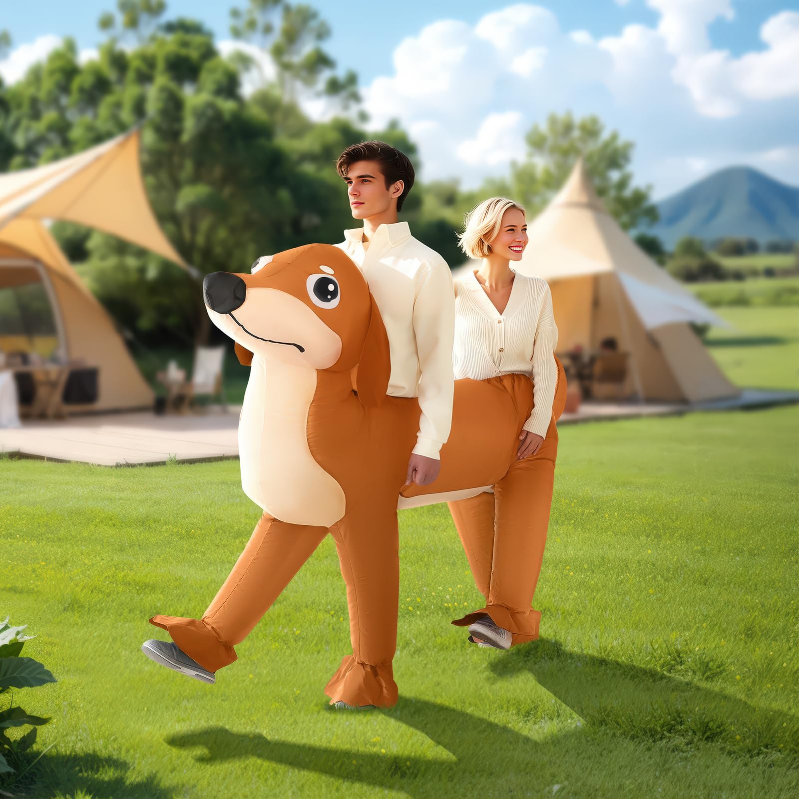 - 【Lightweight and Comfortable】We choose high-quality, ultra-lightweight materials to ensure that the dog costume remains light and soft after inflation, so you won't feel the slightest burden during the wearing process. Whether you are standing, walking or dancing for a long time, you will be able to enjoy a free and easy wearing experience, making your fun time more carefree.