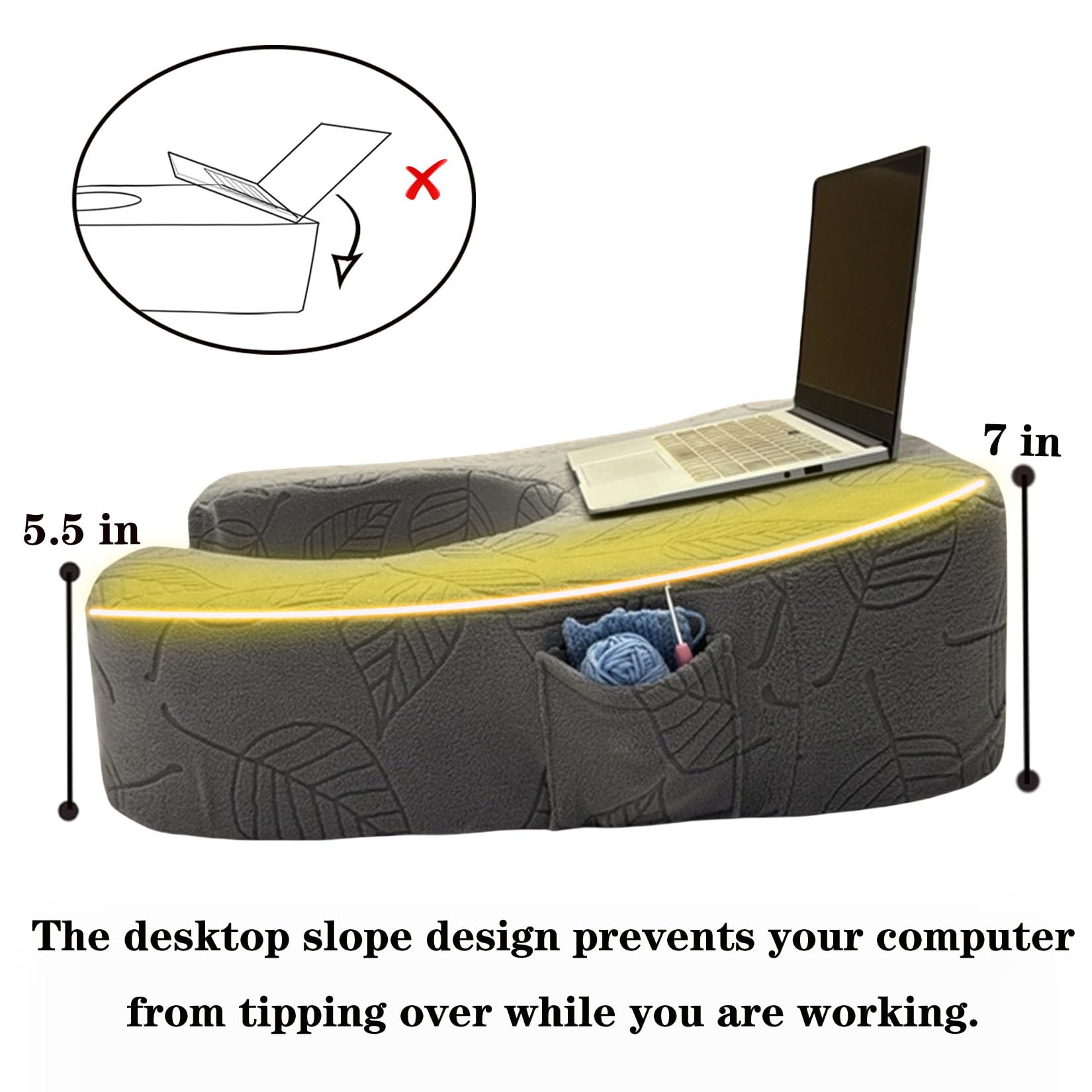 - FITS THE BODY: This adult laptop desk pillow features an enlarged, widened surface for extra space and comfort. Its flat surface and armrests provide stable support, making it comfortable to use in bed or on the couch.