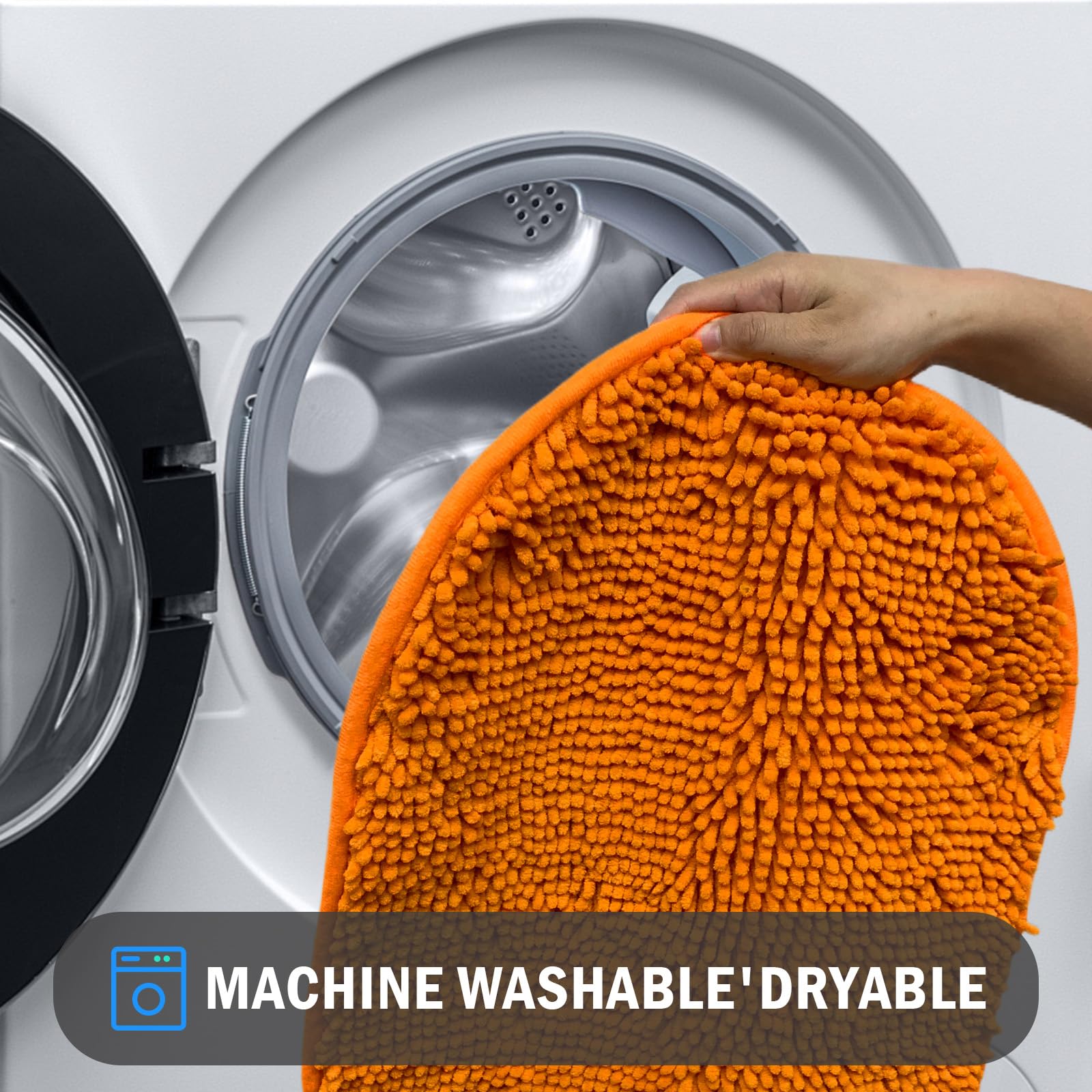 - ULTRA SOFT AND COMFORTABLE: Made with ultra-soft microfiber shaggy material, the high-pile chenille bath mat is incredibly comfortable underfoot, perfect for stepping out of the shower or tub. Our toilet mat has 1.18 inches of plush to keep you warm on cold floors and cushions your feet very effectively when you step on it.