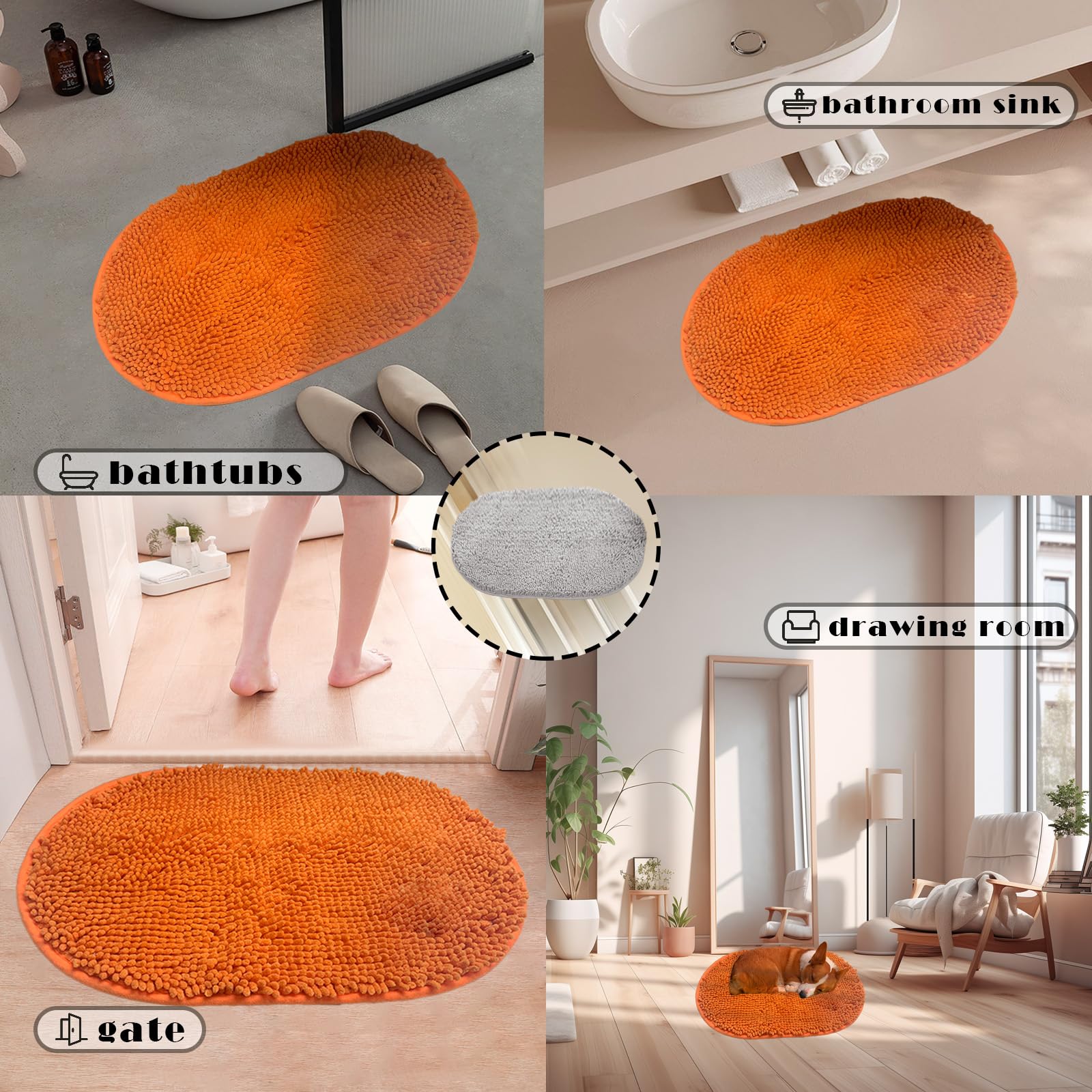 XYSaiXuan Oval Chenille Bathroom Rug, Ultra Soft Microfiber Shaggy Bath Mat, Machine Washable Thick Fluffy Carpet Rug, Non-Slip Water Absorbent Shower Mat for Bathroom, Shower (Orange,16''×24'')