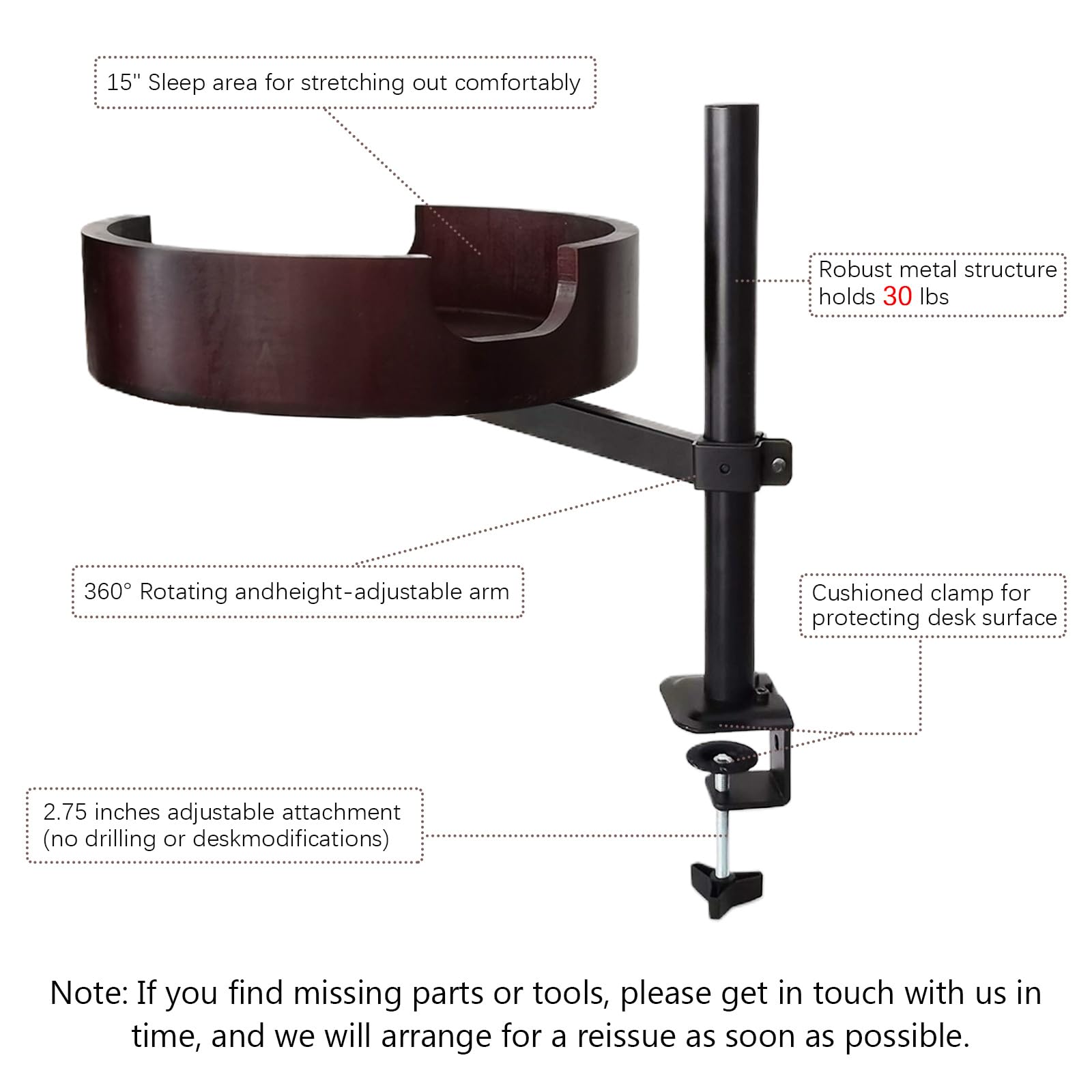 - The adjustable feature allows you to customize the height of the cat desktop bed, the height can be adjusted from 0-15 inches, and the widened desktop clip can also fit almost all tables. 15 inch nest can fully accommodate cats of all sizes, allowing them to move and rest on it.