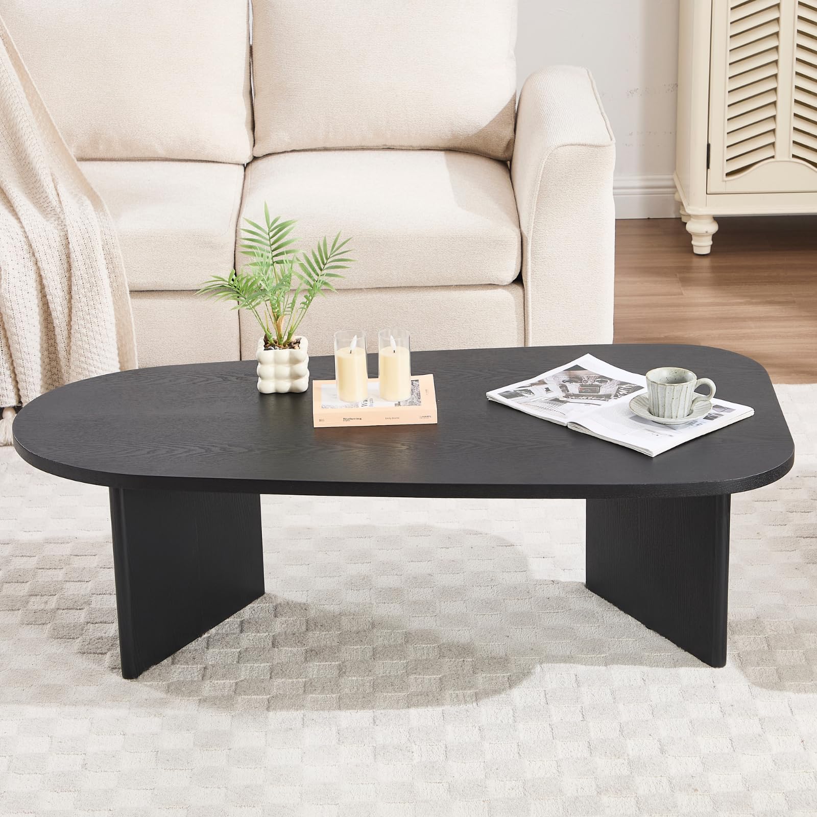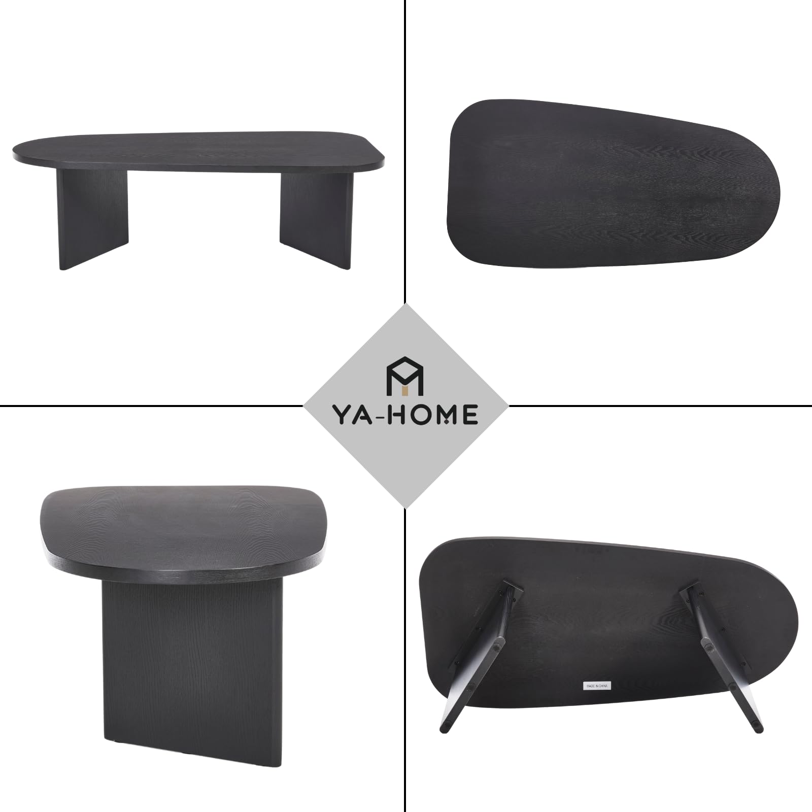 Ya-Home Black Coffee Table, Mid Century Modern Living Room Table with Irregular Surfboard Shape Top Solid Base, 51” Side Table Reception End Table for Office, Balcony, Black