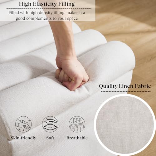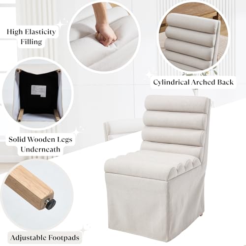 Ya-Home Modern Dining Chairs Set of 2, Linen Upholstered Dining Room Chairs with Cylindrical Back/Seat, Slipcovered Accent Chairs with Skirted Base & Solid Wood Legs for Living Room/Kitchen, Beige