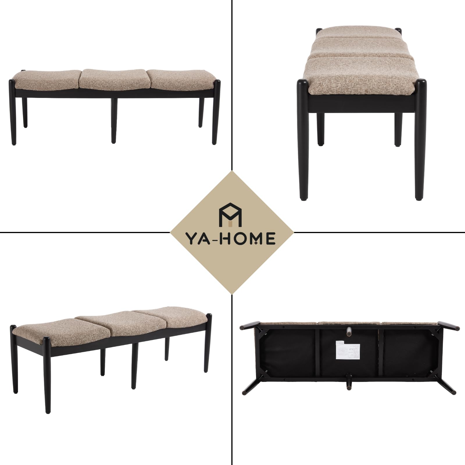 Ya-Home Modern Entryway Bench, Linen Upholstered Bedroom Bench End of Bed Bench, Window Bench with Padded Seat Black Wood Legs for Living Room/Dining Room, 54 Inches Long, Khaki