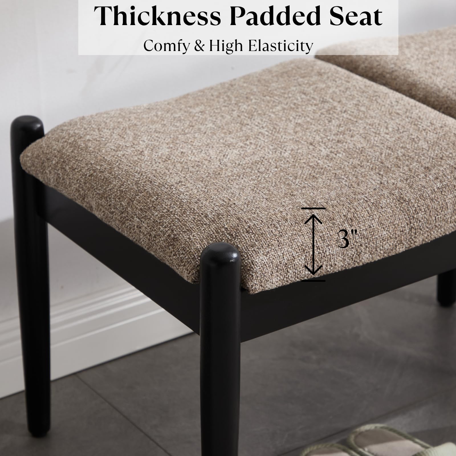 Ya-Home Modern Entryway Bench, Linen Upholstered Bedroom Bench End of Bed Bench, Window Bench with Padded Seat Black Wood Legs for Living Room/Dining Room, 54 Inches Long, Khaki