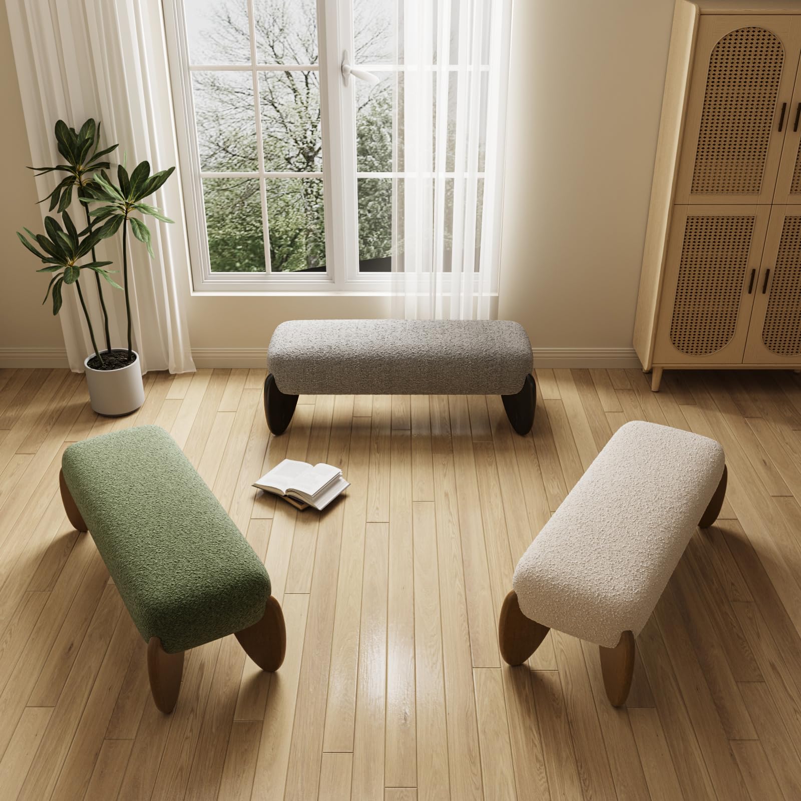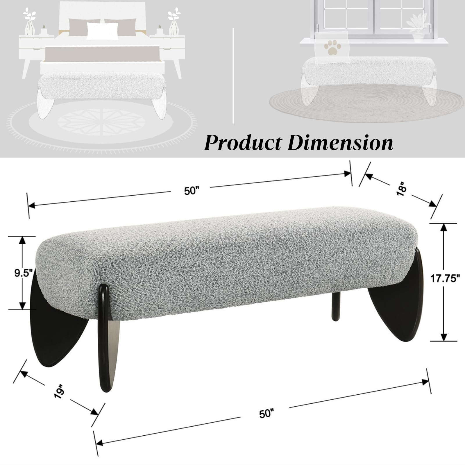 Ya-Home Modern Living Room Bench, Boucle Upholstered Bedroom Bench End of Bed, 50” Entryway Bench with Black Wooden Legs, Window Ottoman Bench for Bedroom/Hallway,Grey