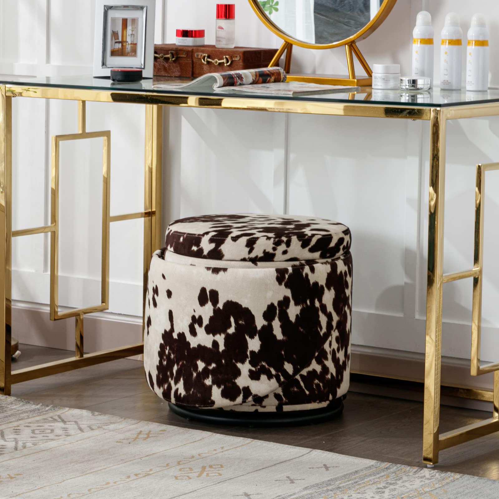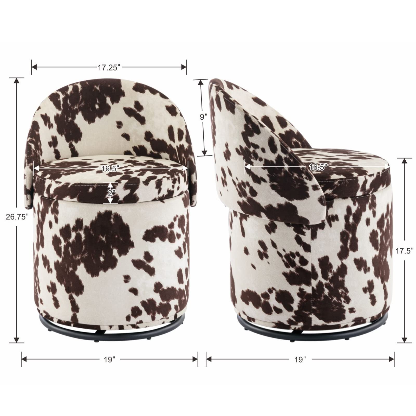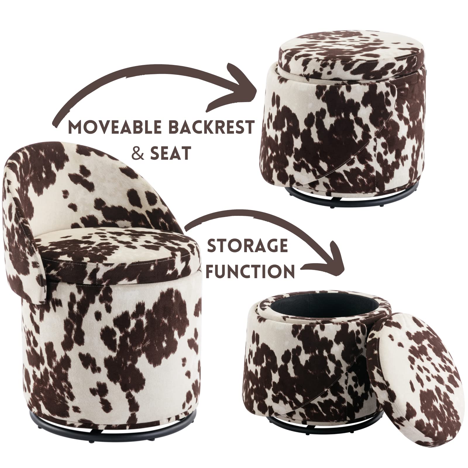 Ya-Home Modern Swivel Ottoman Vanity Chair, Linen Upholstered Barrel Club 360°Degree Swivel Side Stool with Storage, Comfy Makeup Stool for Bedroom Living Room, Milk Cow
