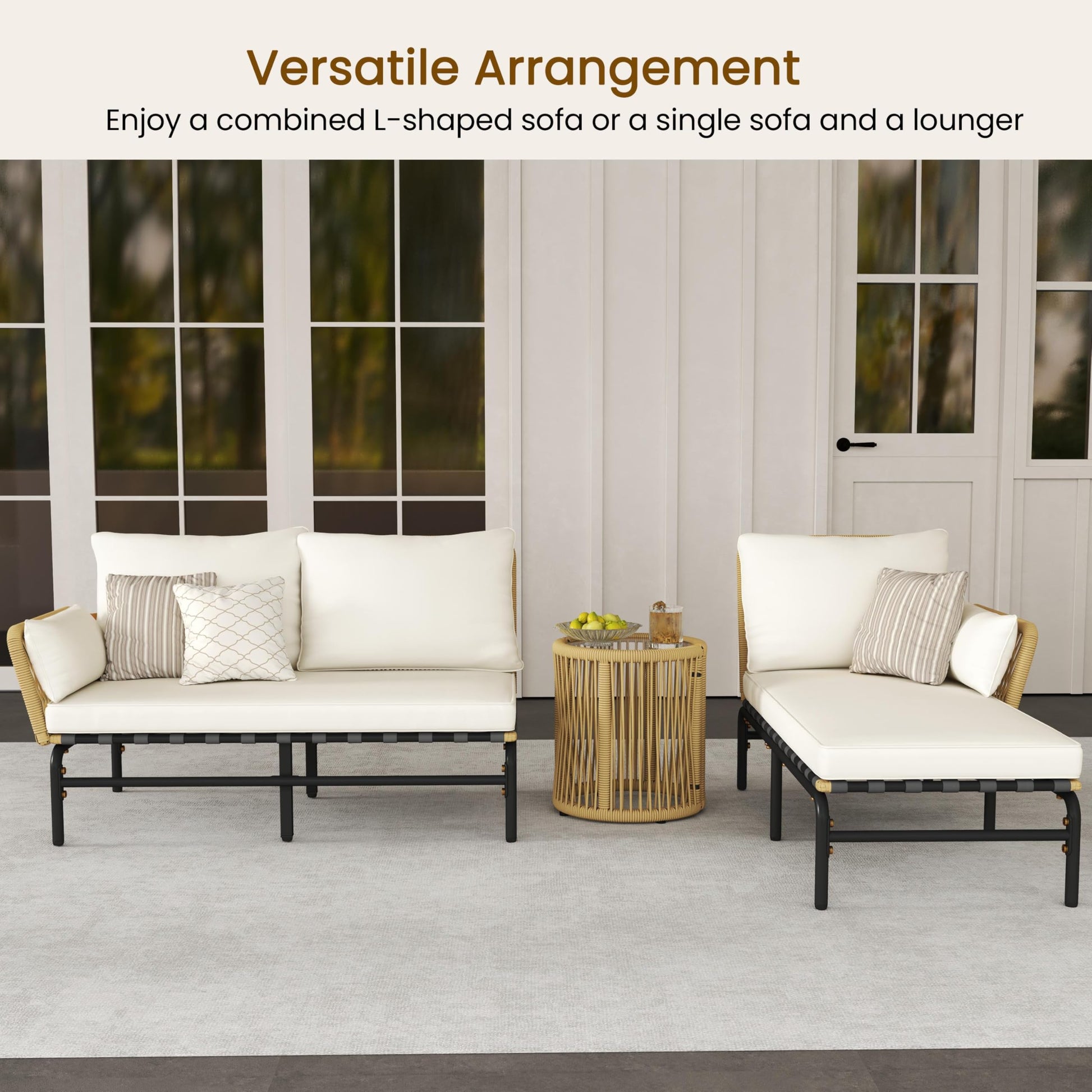 - Flexible Arrangement: The sofa and lounger can be separated or combined into a larger L-shaped arrangement, allowing you to adapt this versatile conversation set to suit different outdoor spaces