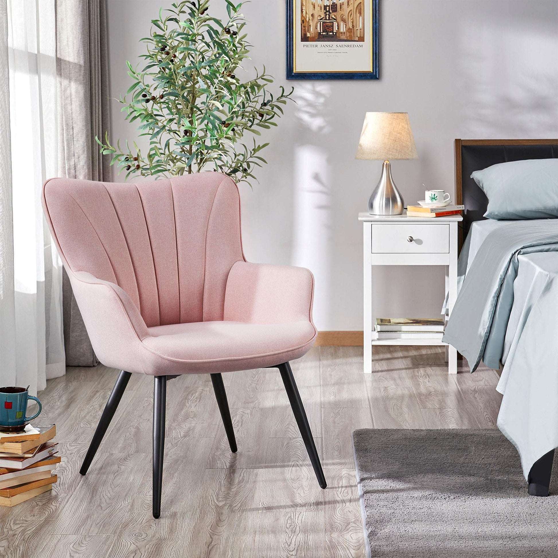 Yaheetech Accent Chair, Modern and Elegant Armchair, Linen Fabric Vanity Chair with Metal Legs and High Back for Living Room Bedroom Office Waiting Room, Pink
