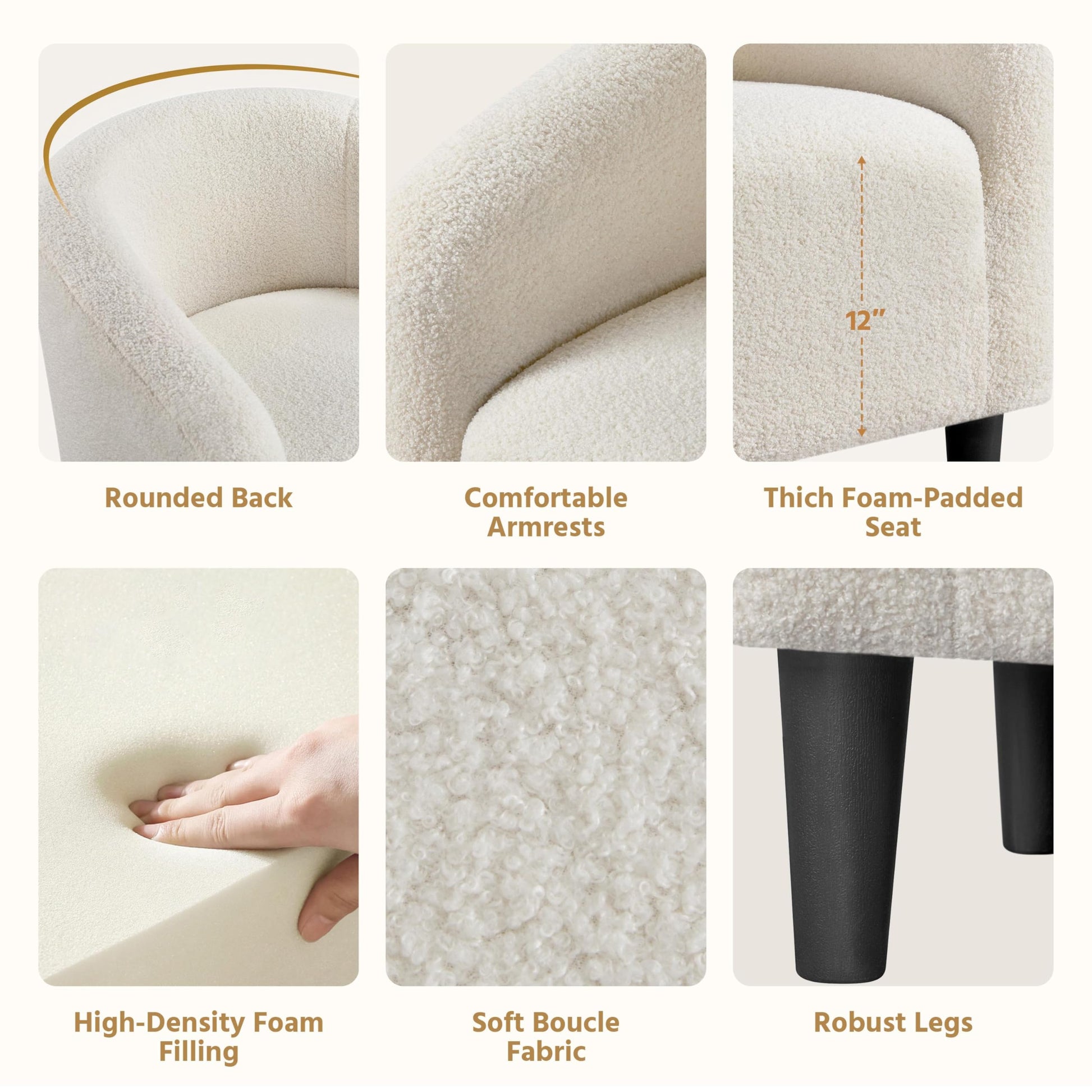 - Snug & Cozy: Our 2-piece living room chair set features a softly rounded back and arms, complete with foam padding that provides ultimate comfort and support whether you're reading, relaxing or socializing. The boucle upholstery complements this comfort with a gentle texture that invites you to relax and feel at ease