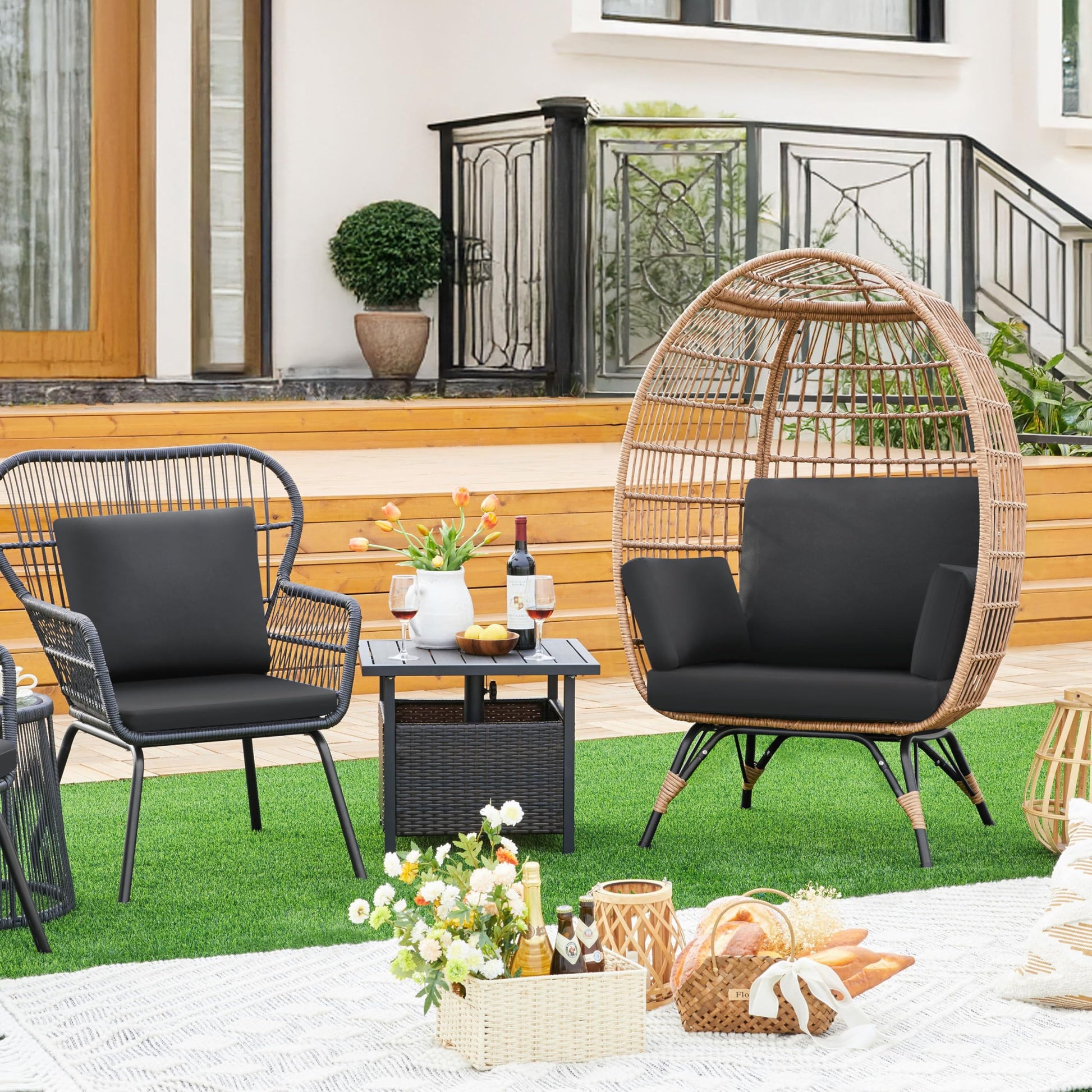Yaheetech Egg Rattan Chair, Oversized Indoor/Outdoor Egg-Shaped PE Basket Lounger with 4 Cushions, Metal Frame Stand for Patio, Balcony, Backyard, Living Room, Light Brown/Black