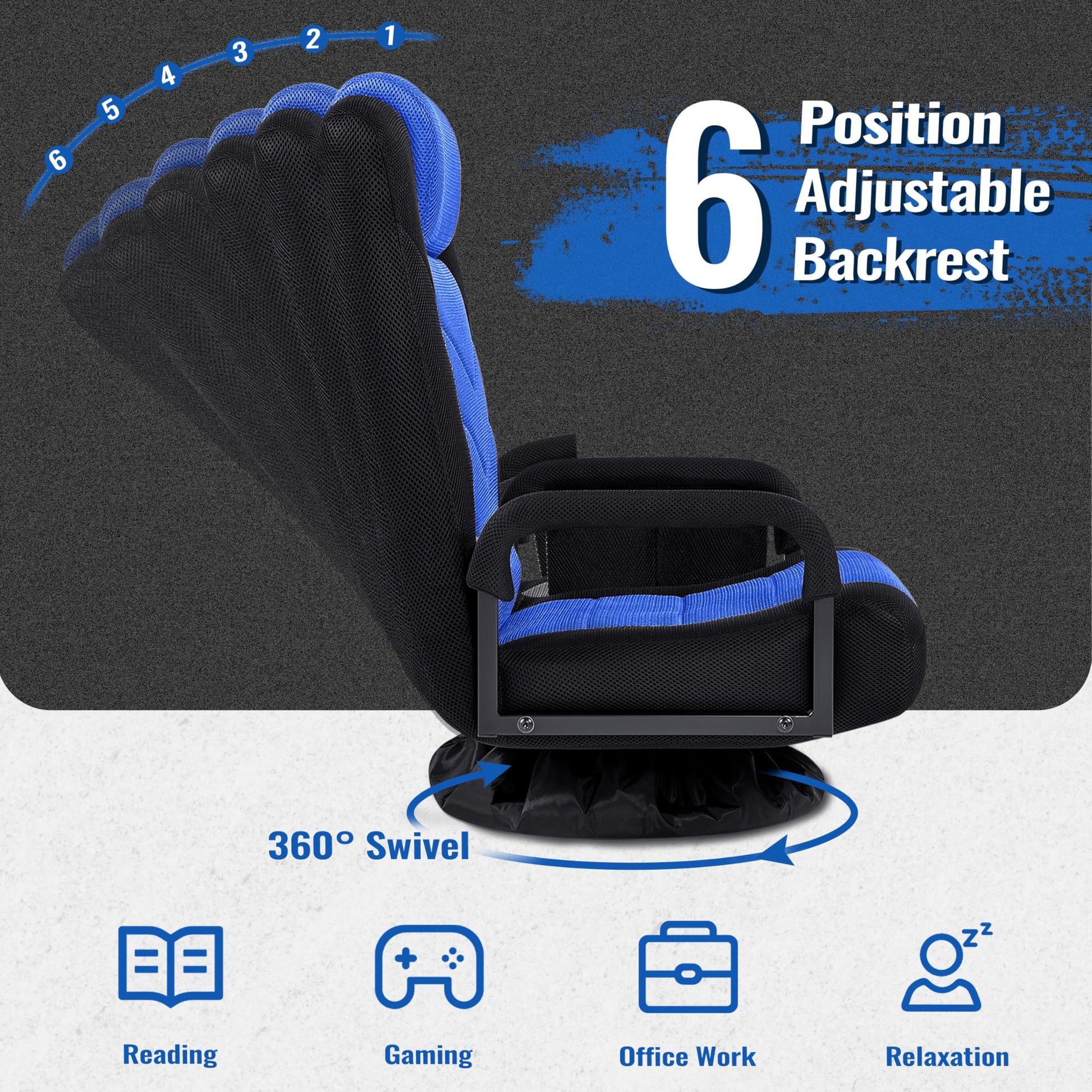 Yaheetech Floor Gaming Chair Swivel Video Game Chair Multipurpose Lazy Lounger Couch for Playing Games, TV, Reading with 6 Adjustable Position, Side Pocket, Armrest Handles