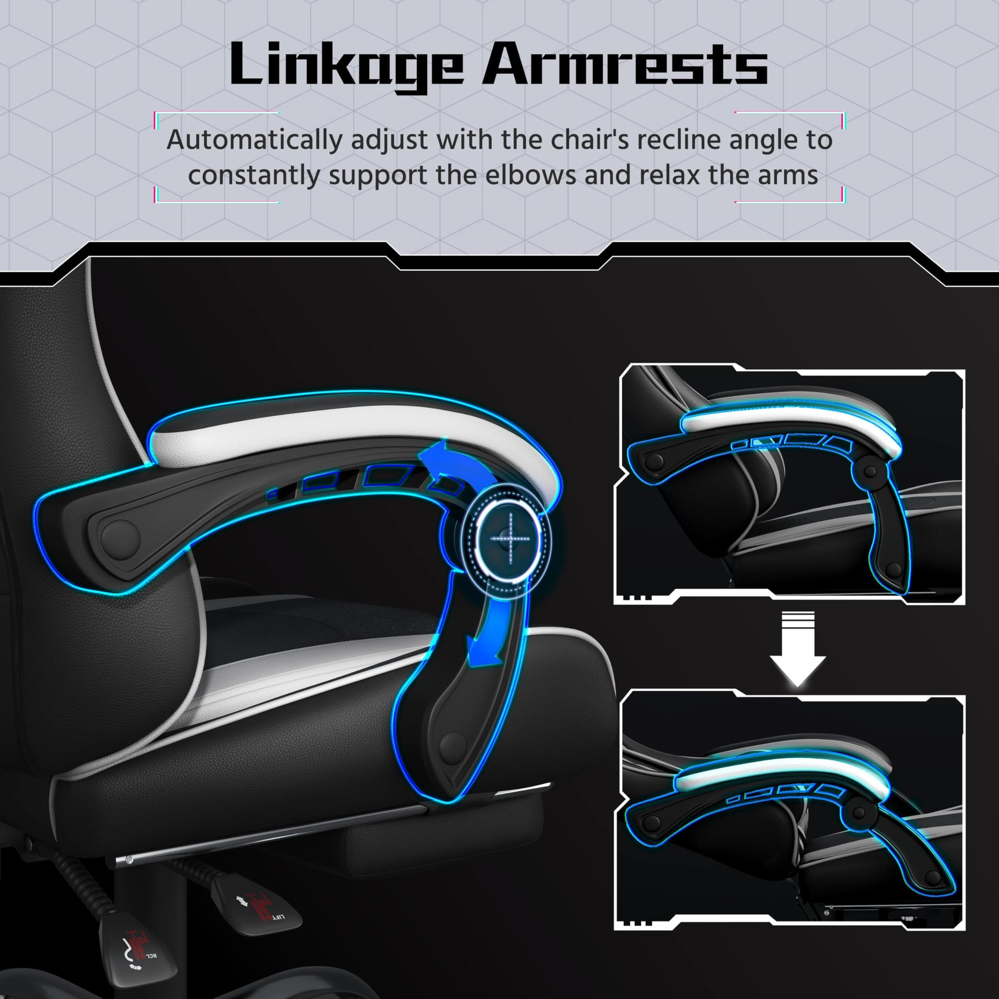 - Ergonomic Comfort: Designed for sedentary activities, this game chair boasts foam-padded, adjustable backrest, armrests, headrest, and footrest. Adjust to align with your body's natural curve for personalized relaxation and optimal fit