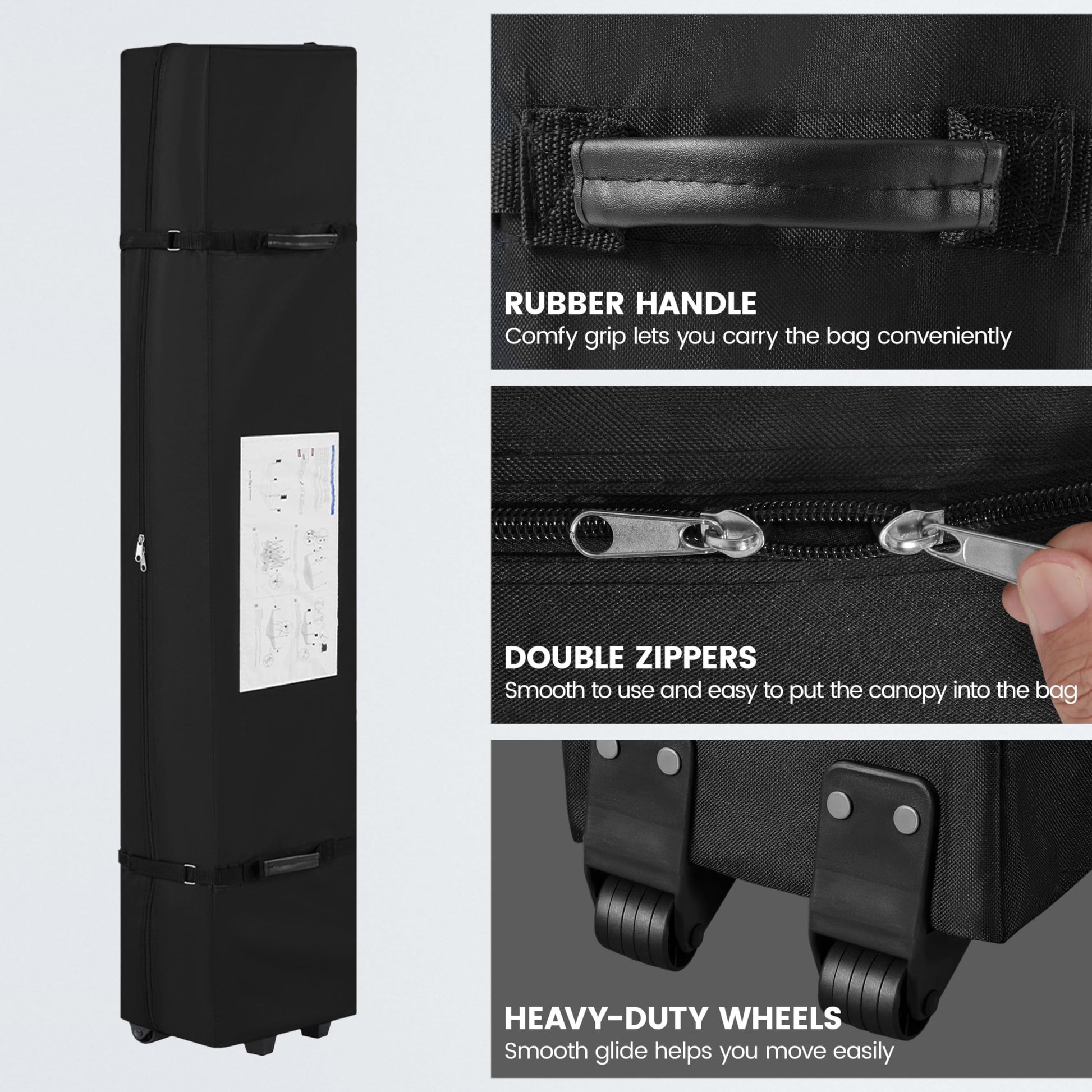 - Compact Folded Size: Despite its large size, this pop-up canopy can be folded into a compact roller bag of 11.4″ L × 9″ W × 61.4″ H, making storage and transportation a breeze