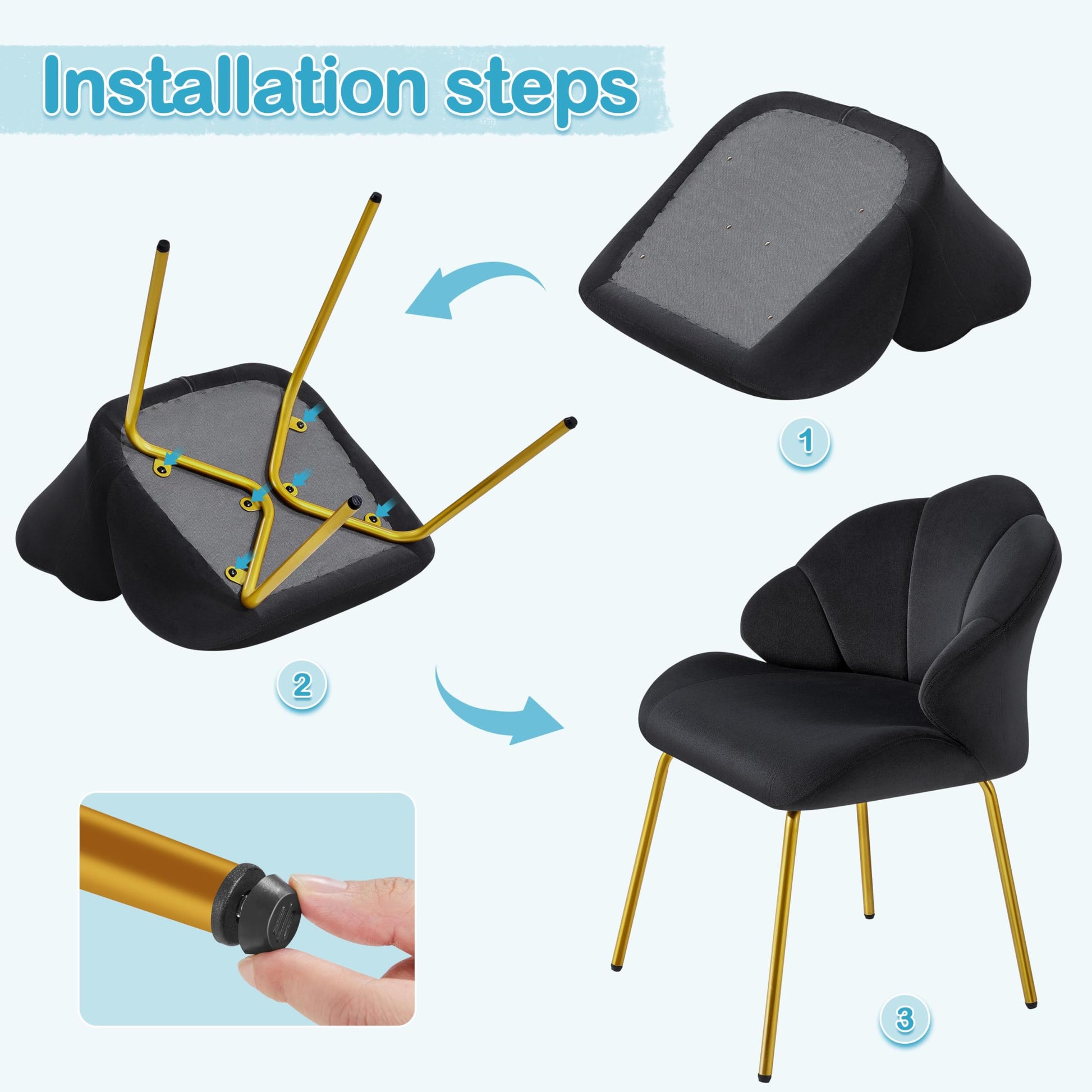 Yaheetech Vanity Chair, Velvet Accent Chair with Shell-Shaped Backrest, Modern Armchair with Gold Metal Legs for Dressing Room/Bedroom/Living Room, Black