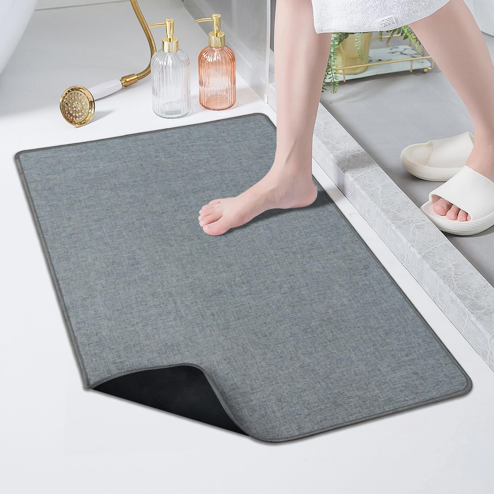 Yancrop Ultra-Thin Bath Mat Roll-Up Bath Rugs Crease-Free Door Mat with Non-Slip Rubber Backing Absorbent Fabric Surface Quick Dry for Bathroom, Bedroom, Sink or Door (Grey,17"x30")