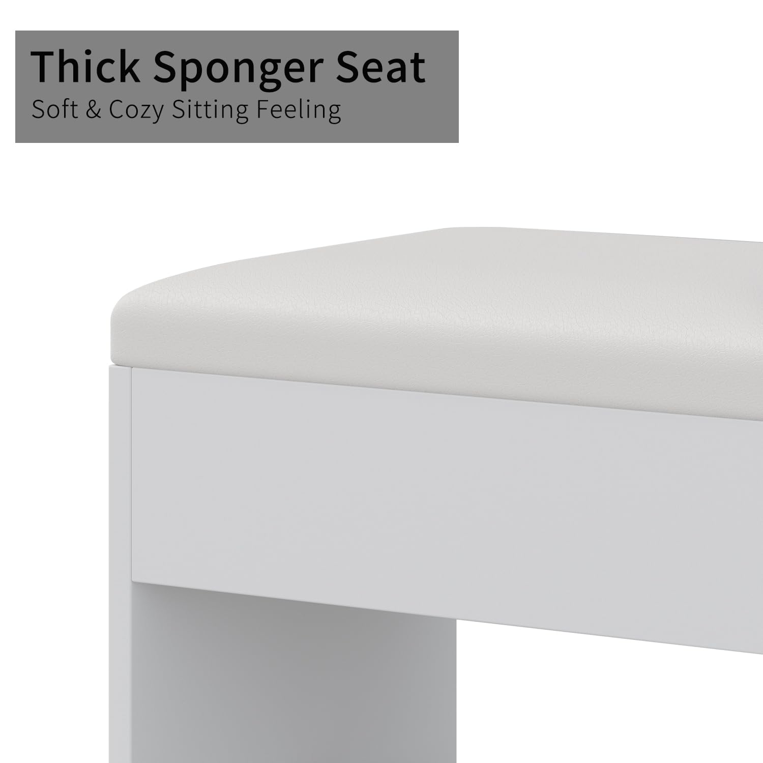 - Soft Vanity Chair: Included with the dressing table is a soft, padded stool made from premium flame-retardant sponge and fabric. The ergonomic design and proper height ensure a comfortable makeup experience, while the stool can be tucked completely under the table to save space when not in use