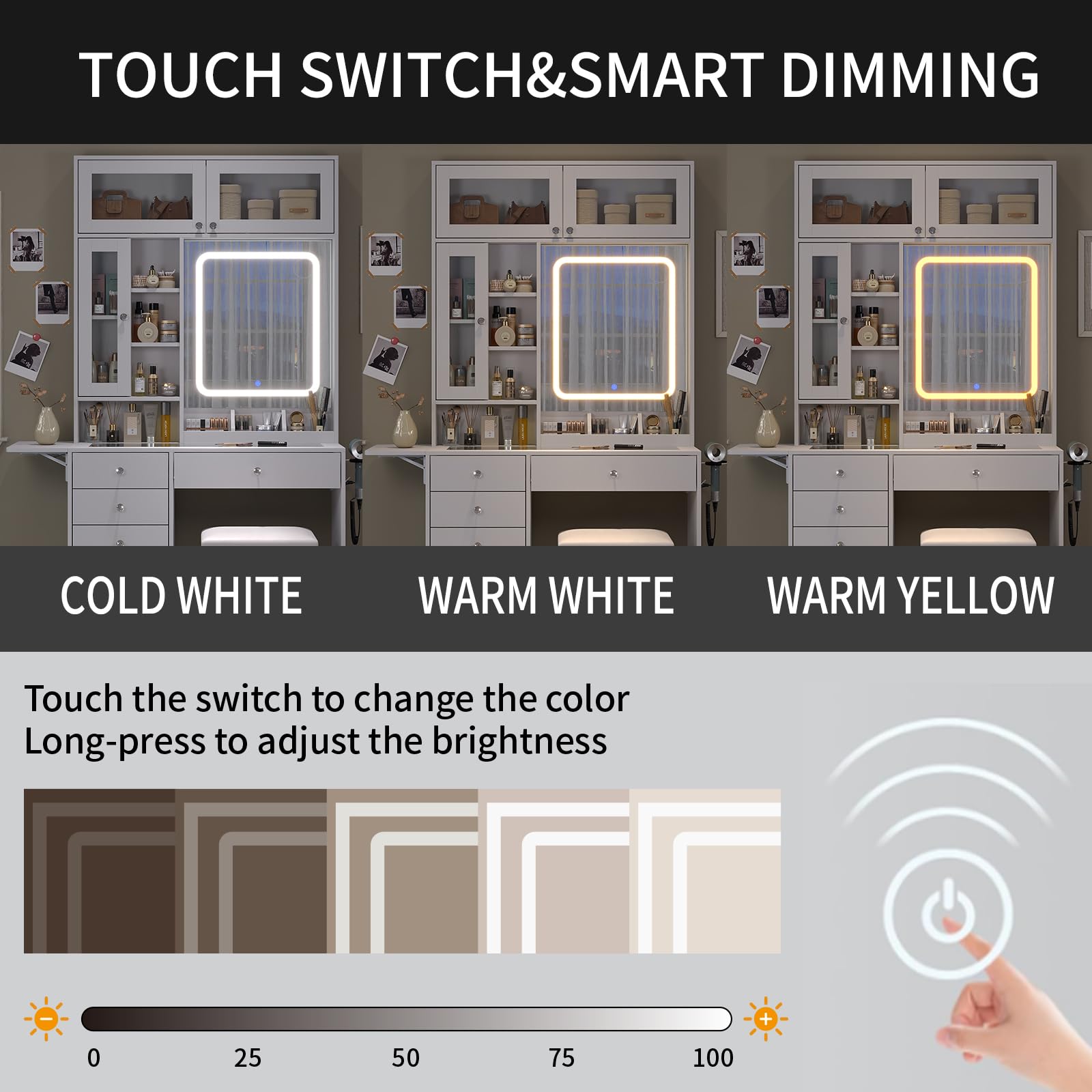 - After-sales Service: Rest assured with our reliable after-sales service, ensuring your satisfaction with this makeup table with mirror and lights. Our vanity have step-by-step instructions and labeled accessories so you can follow the instructions and make them easily! If you encounter any installation difficulties, please feel free to contact us, we will promptly provide you with assistance.