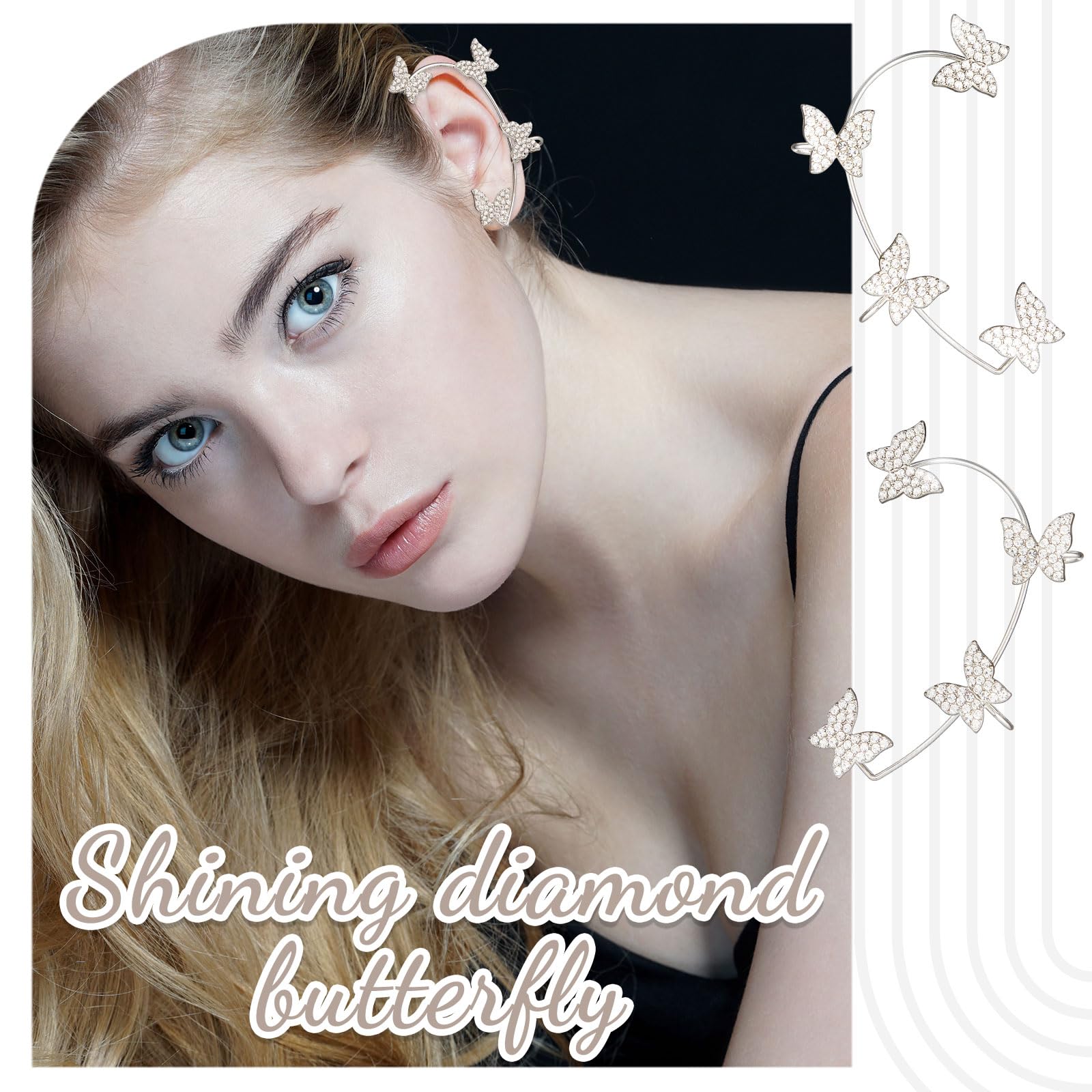 - Making you stylish: the ear cuff wrap earrings featuring classic silver color and rhinestone decorations are beautiful matching accessories for your sweater, coats, dresses, skirts, shirts, jeans, suits and other clothes, which can go well with your different dressing styles and make you more elegant and delicate