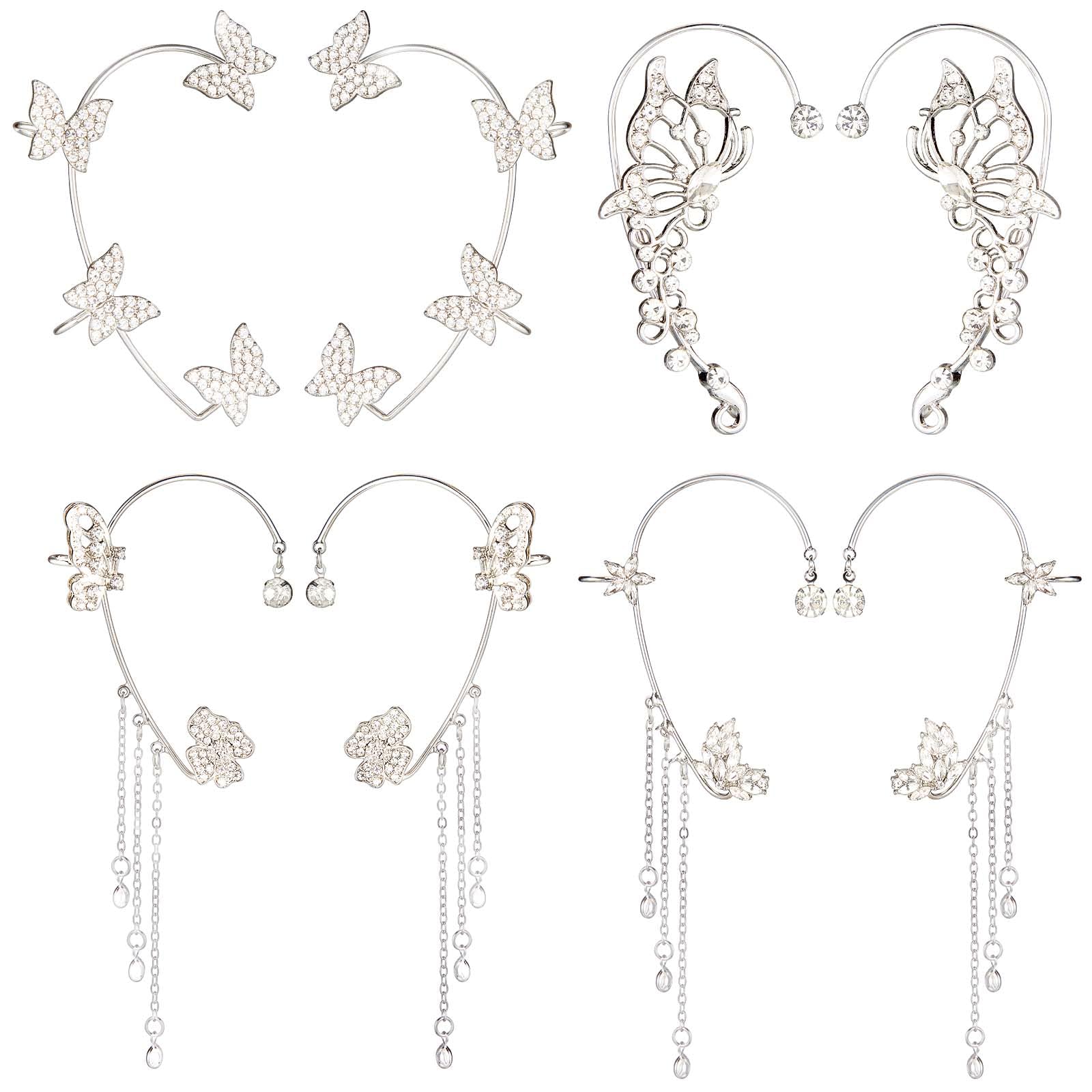 - What you receive: come with 4 pairs of plated crawler hook earrings in 4 butterfly styles, enough quantity can meet your daily wearing, matching and sharing needs, 60 x 40 x 15 mm; Weight 5 grams / 0.17 ounces / 1 piece; Even if you don't have pierced ears, you can still enjoy the beauty and elegance of wearing earrings