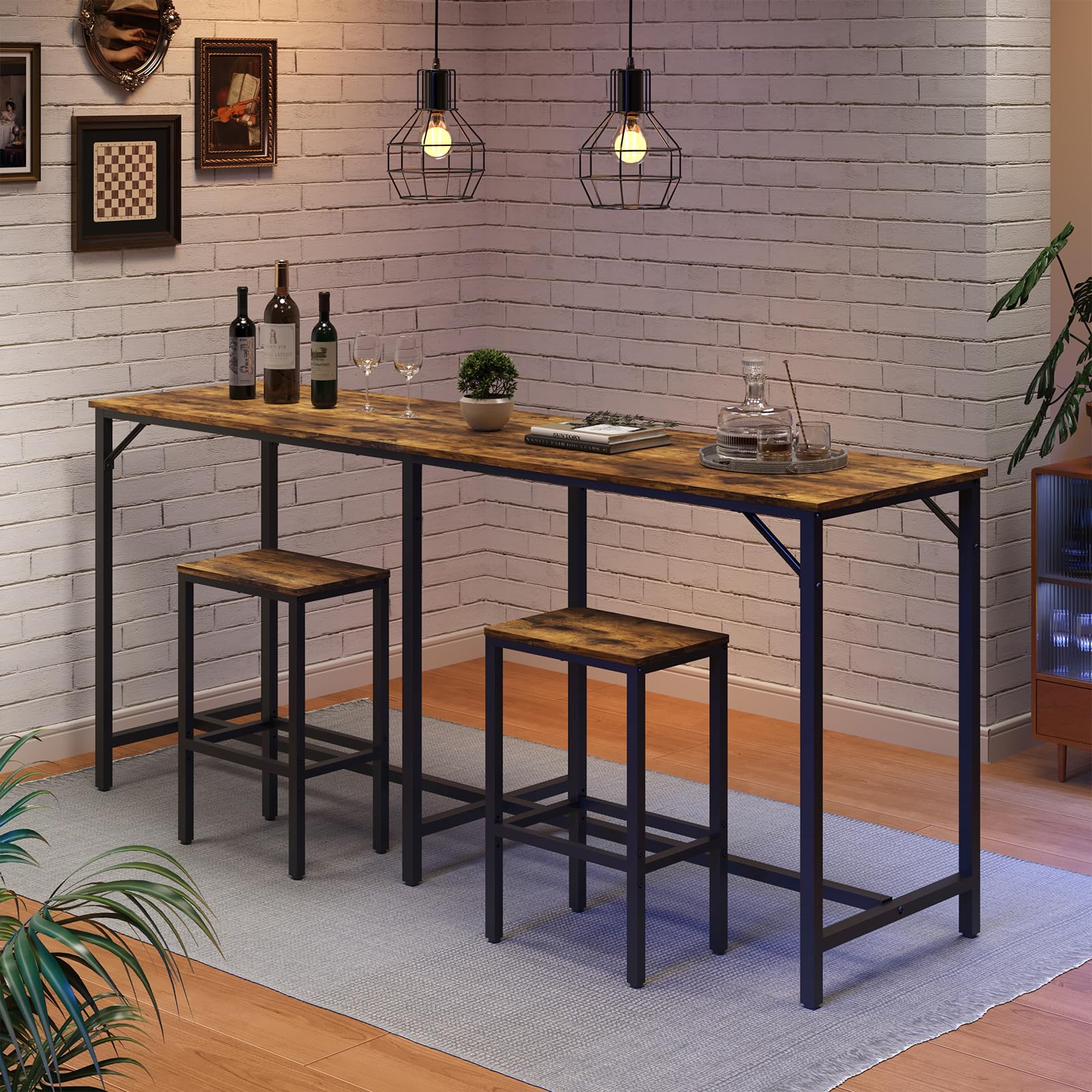 - Versatile for Scenes: The 70.9"L x 15.7"W tabletop, paired with well-crafted bar chairs, makes this 3-piece dining set suitable for family dinners in the dining room and for bars, crafting tables, patios, and more, catering to your various living needs