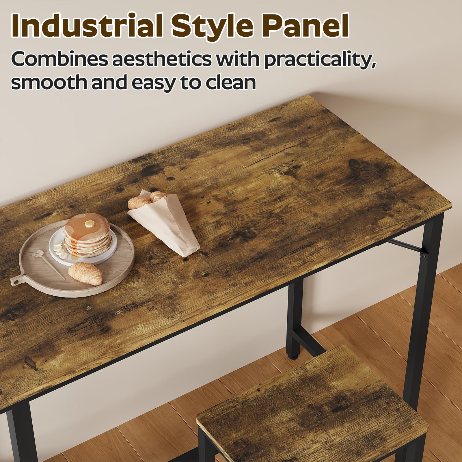 YATINEY 70.9" Bar Table and Chairs Set, Dining Table and Chair Sets, 3 Piece Counter Height Table and 2 Stools, Kithcen Table for Home Restaurant, Bar, Rustic Brown BT09BR