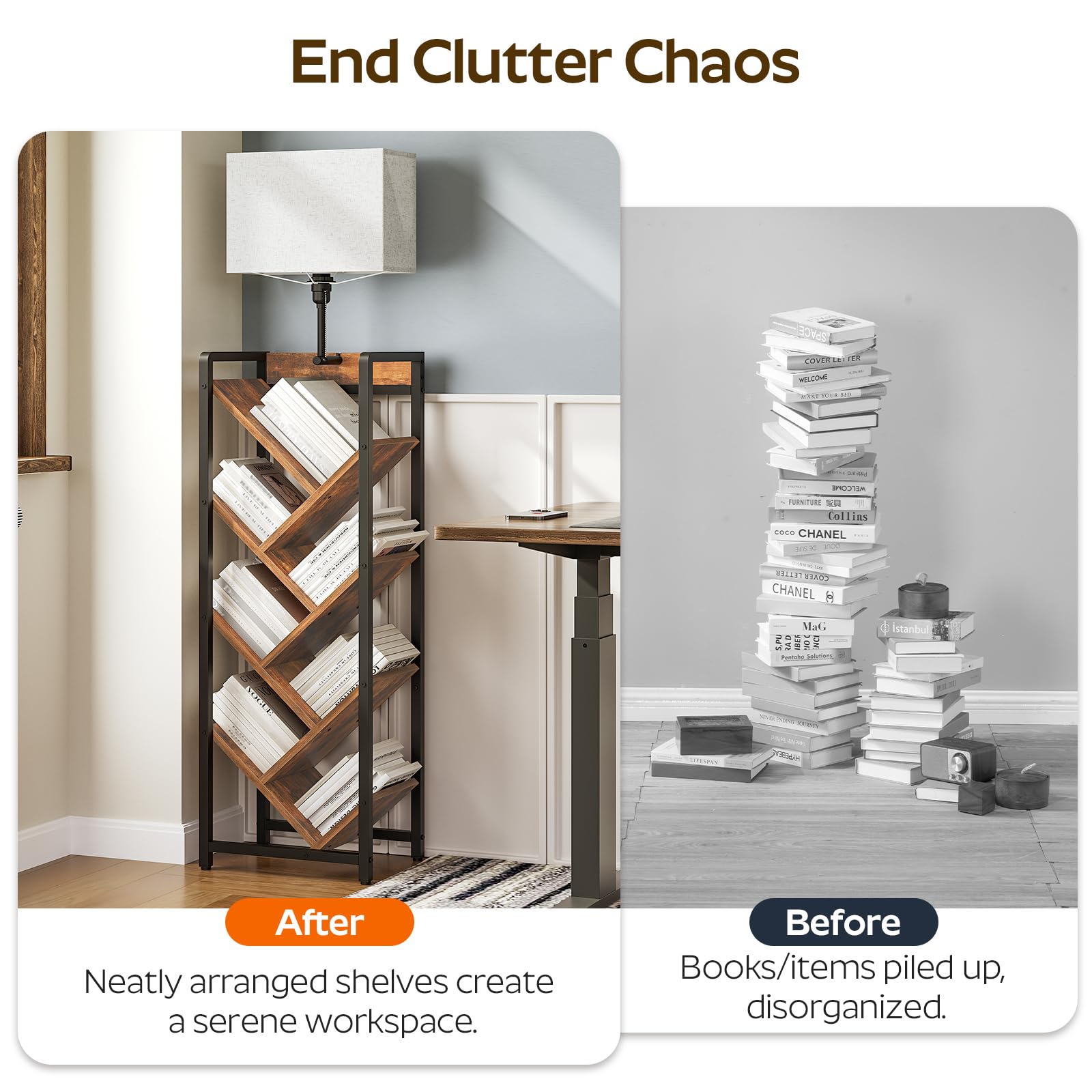 - Versatile for Many Spaces: This multi-purpose bookshelf fits well in living rooms, studies, and bedrooms. Its compact size of 9.8"Dx 13.3"W x 58"H makes even corners useful for storing books, magazines, albums, and CDs neatly