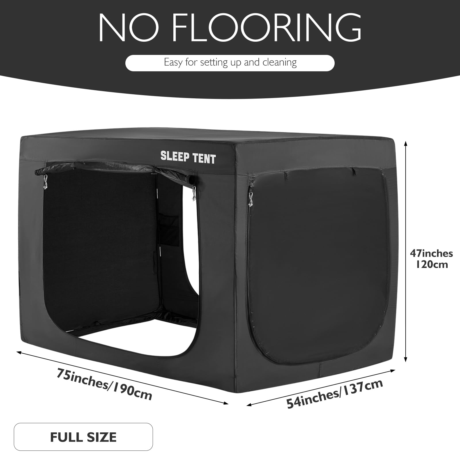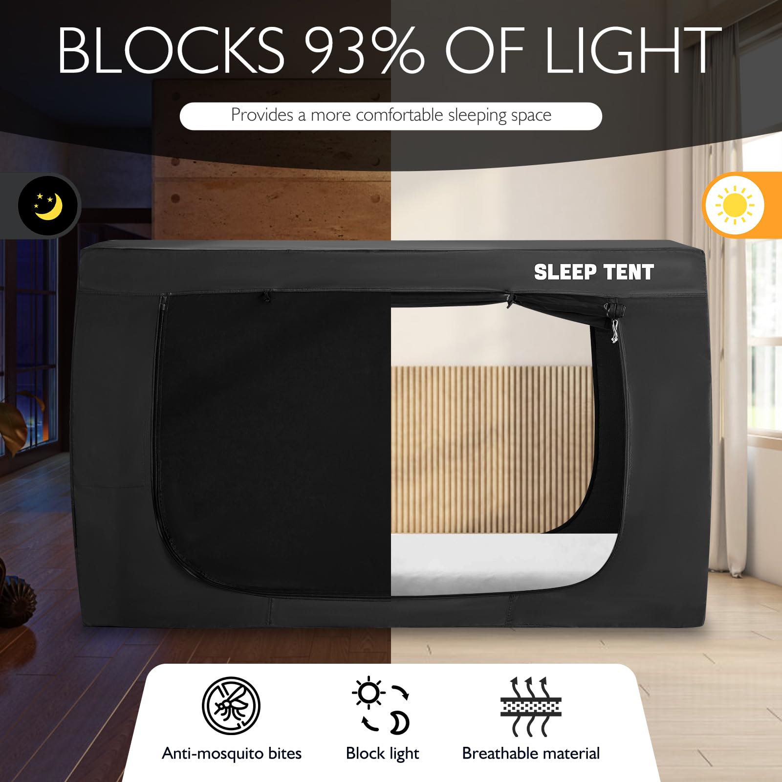 - RELEASE PRIVATE SPACE: This full size bed tent measures 75 x 54 x 47 inches. It creates a private space in dorms, shared rooms, offices and more, which means you can have more relaxation time. The bed tent also allows you to sleep better at bedtime and during naps. Bed tents reduce light by up to 93% so you can see out, but no one can see in. You can adjust the panel as needed to control the light and create a cozy environment.