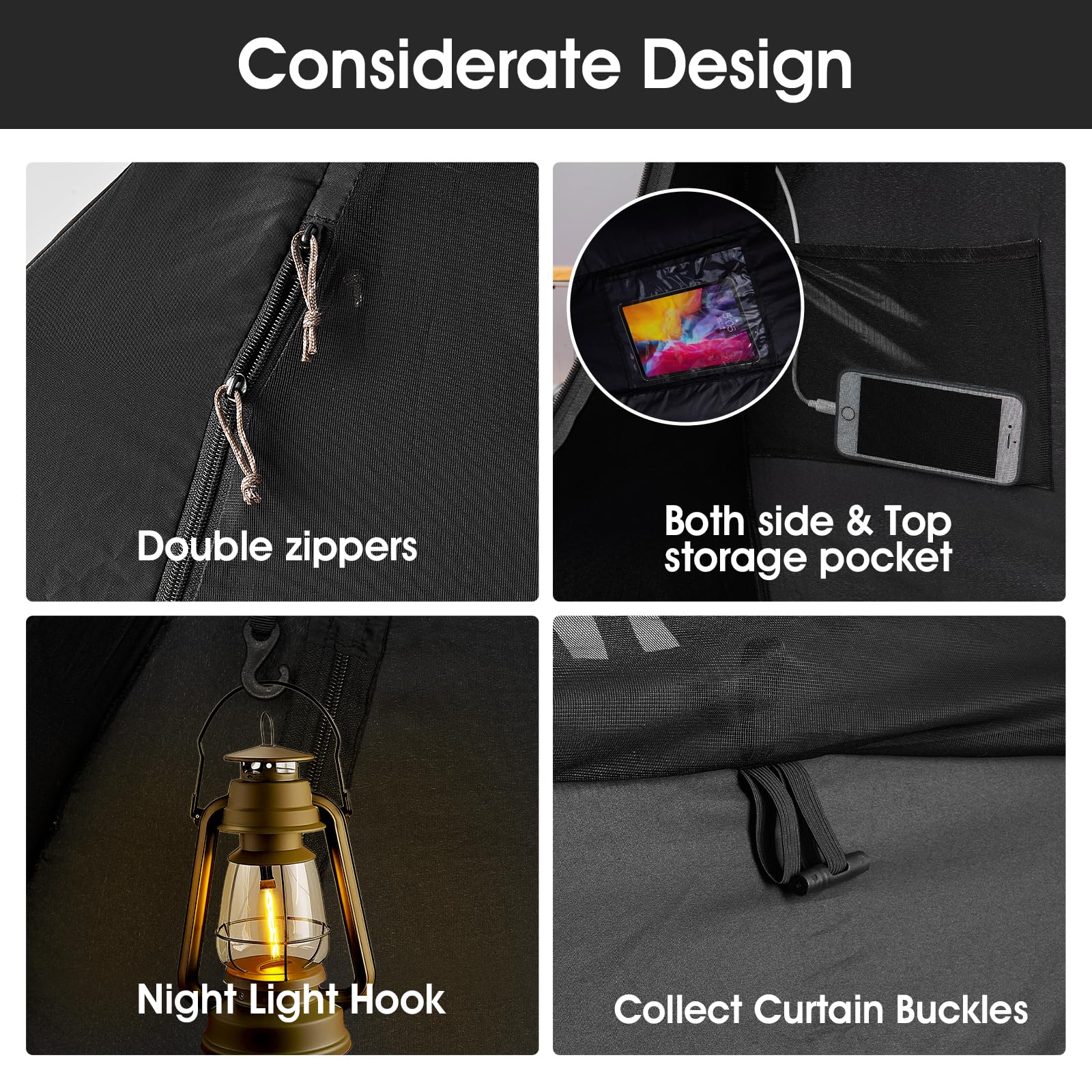 - 📌ONE-CLICK INSTALL:The bed tent can be fully opened with a one-click fixing device.Instant bed tents folds up and easily fits into a portable carrying bag. The package size are 36.4*6.69*5.9 inches and weight 8.38 lbs.