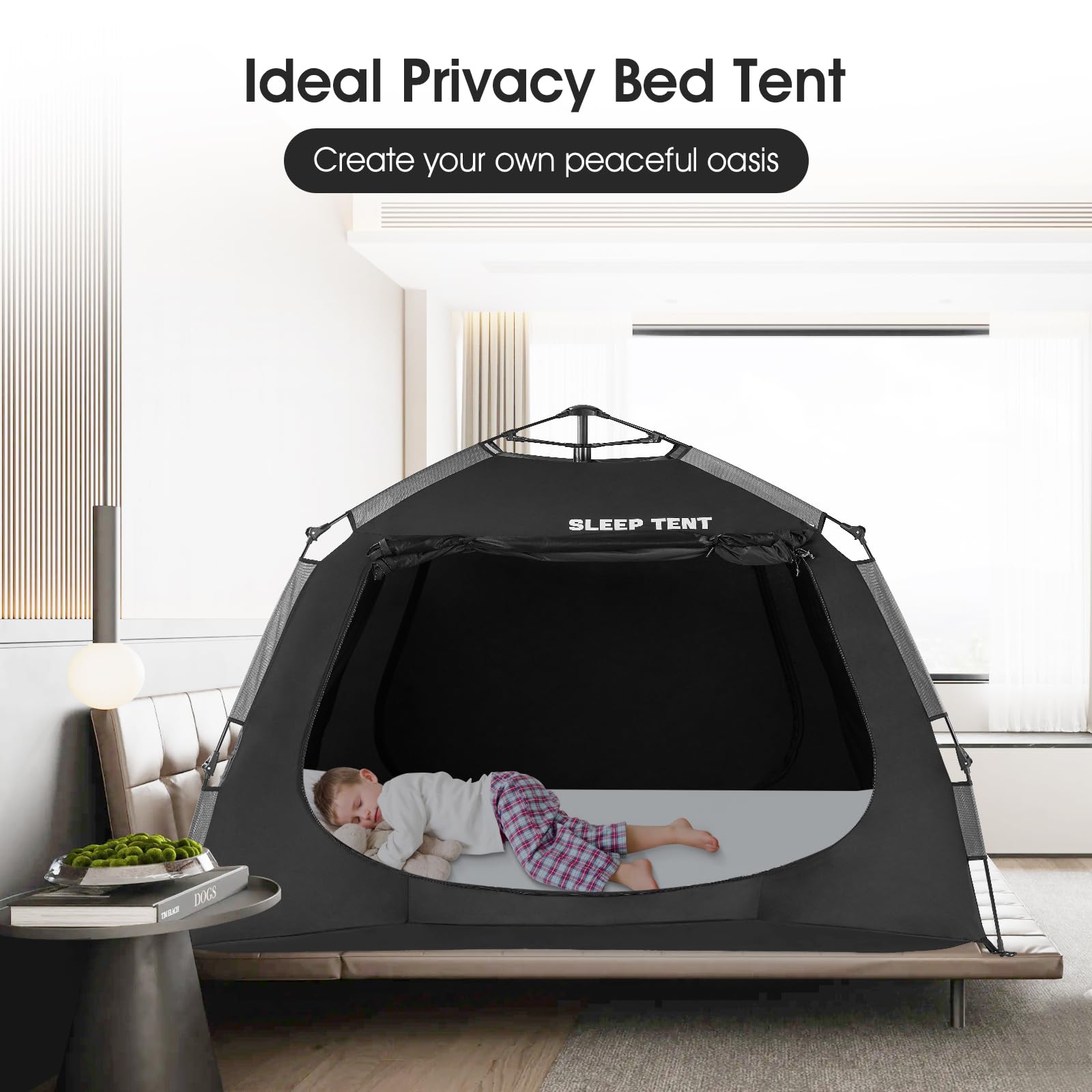 YAVIL Portable Bed Tent Bed Canopy Queen Size,ONE-Click Sleeping Tent Breathable Indoor Tent Privacy Large Space with 3 Doors for Kids and Adult