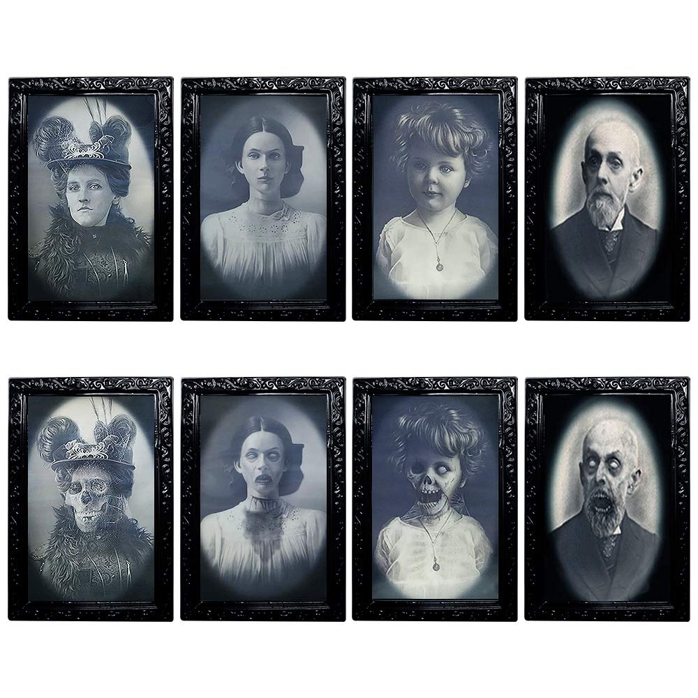 YBB 4 Pack Halloween Moving Picture Frame, 3D Changing Face Horror Portrait Scary Decoration for Home Halloween Party, Castle, Haunted House Decor