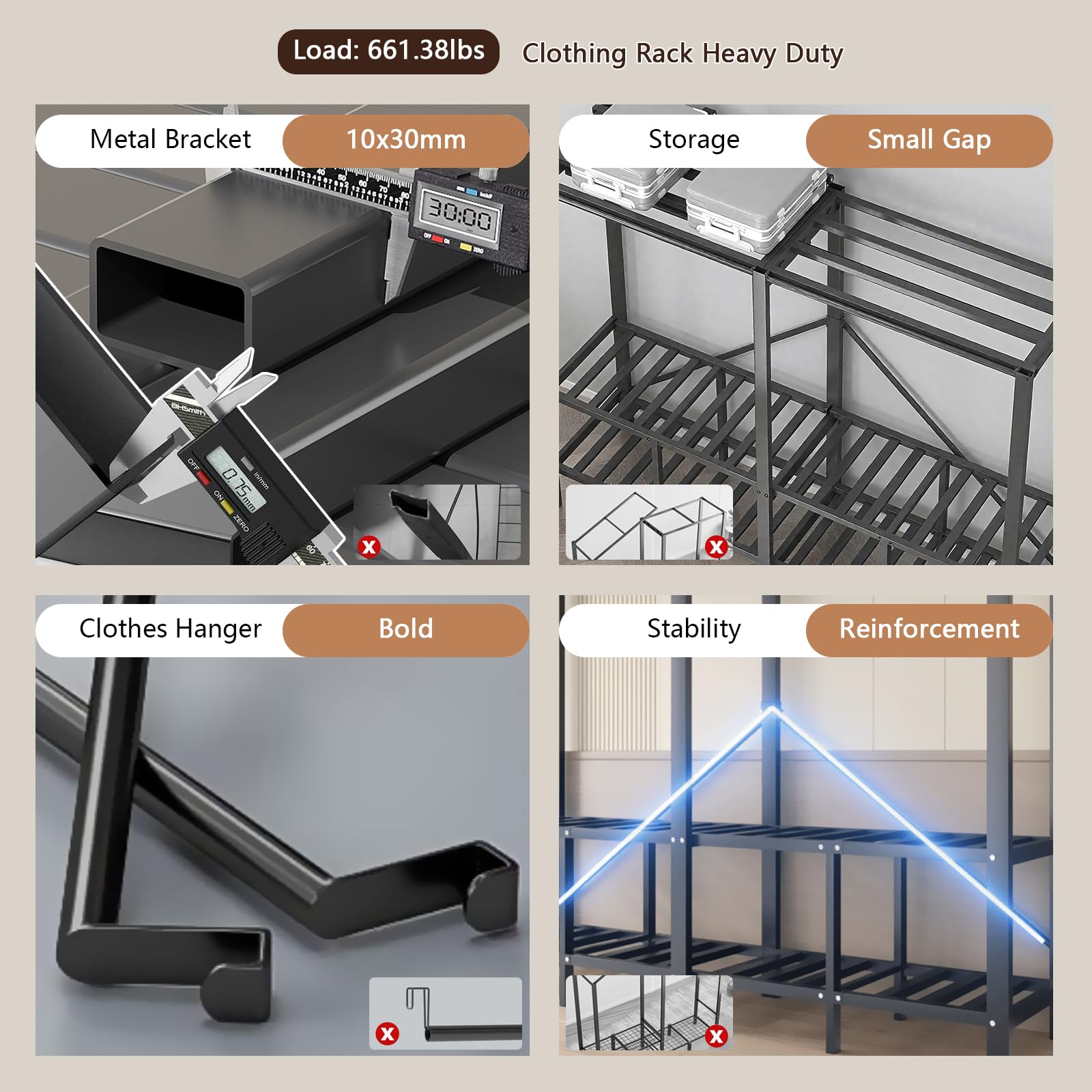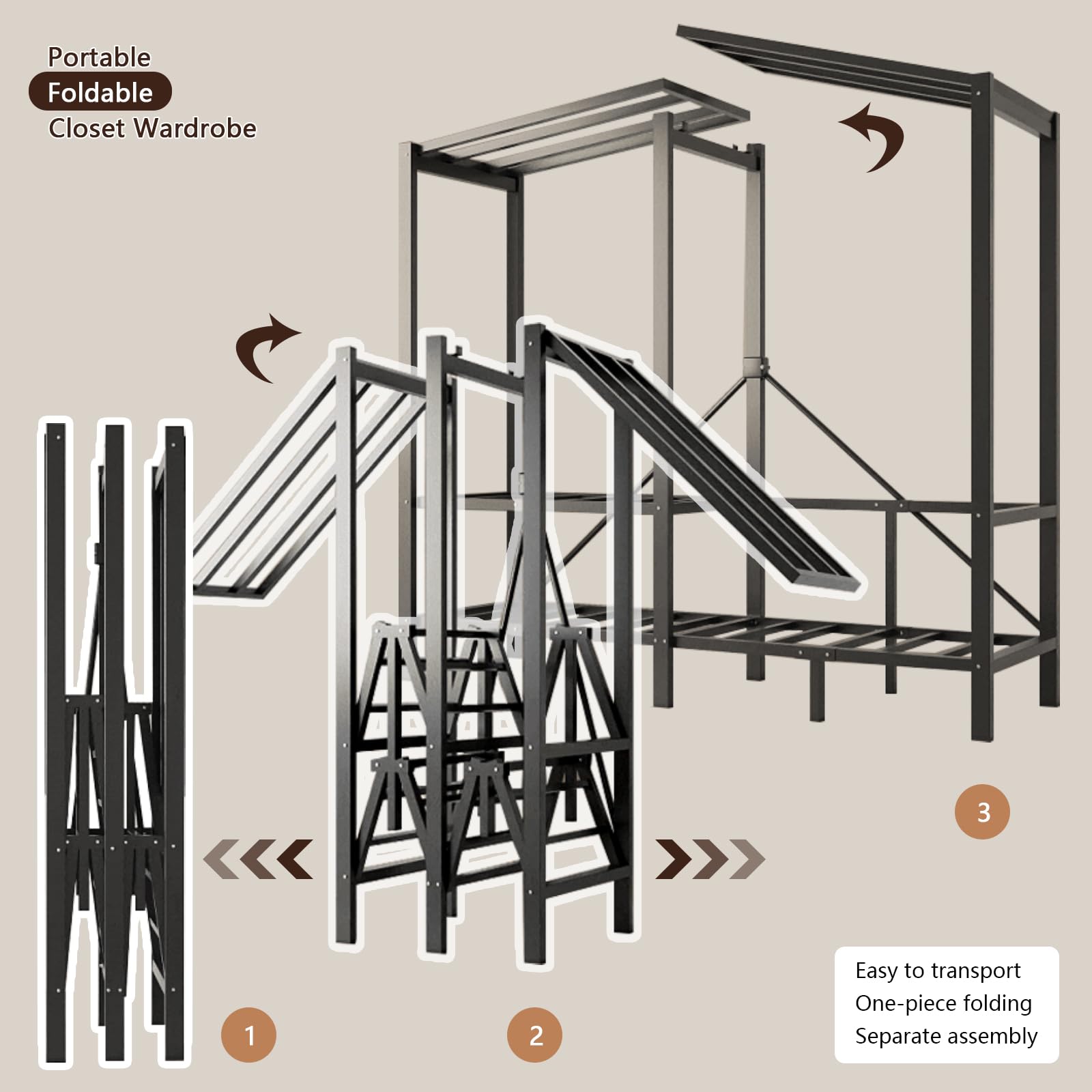 - Heavy Duty Portable Closet: Garment rack crafted with thickened 0.75MM upgraded 15x30MM Steel pipes can bear 300KG, foldable portable wardrobe closet for hanging clothing back is designed with an "x"-shaped pull rod to improve stability.