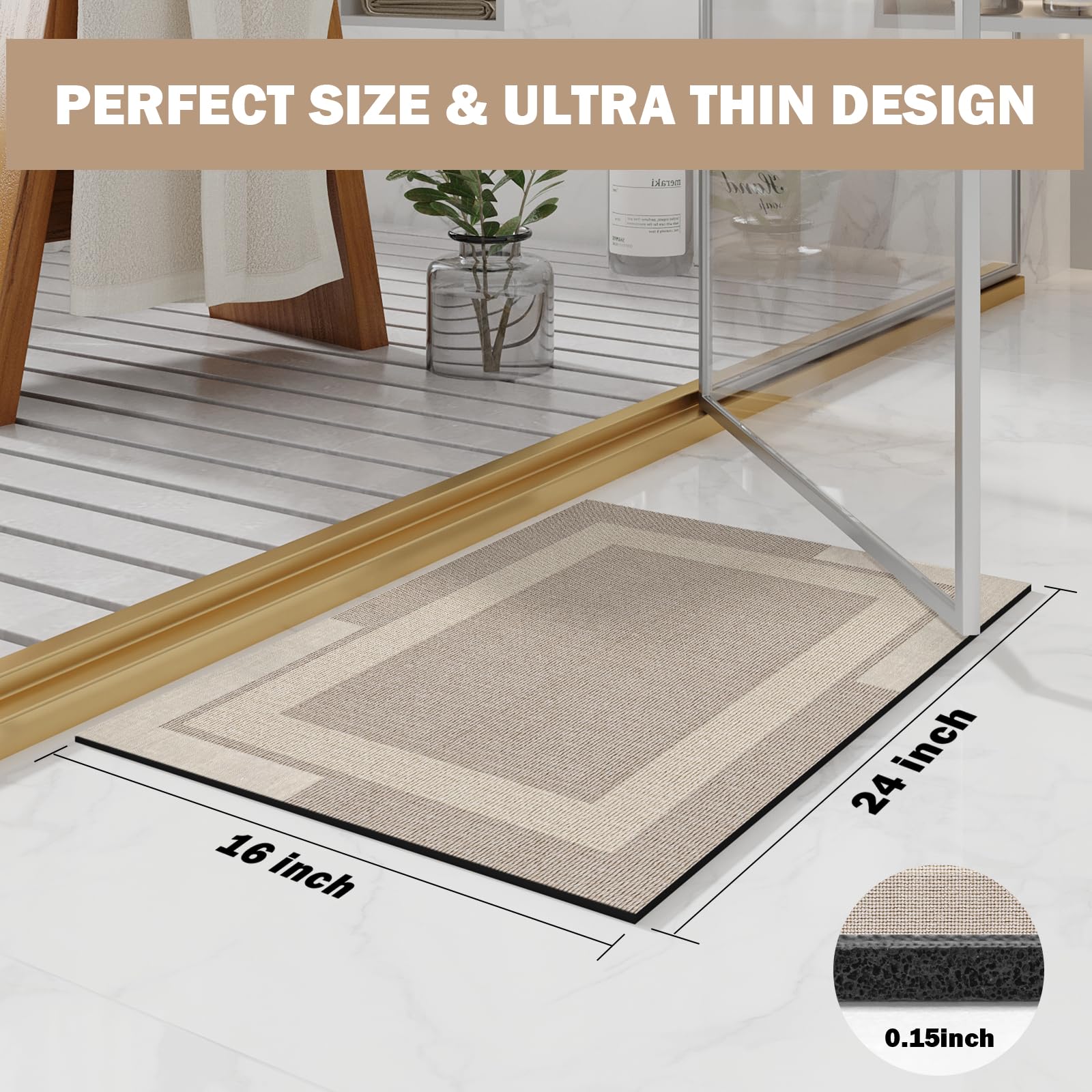 YDKGL Non Slip Thin Bath Mat Bathroom Rugs, Rubber Backing Ultra Thin Bathroom Rug Fit Under Door, Quick Dry Super Absorbent Washable Shower Bath Mats for Bathtub Side Floor, Easy Care Beige 16"x 24"