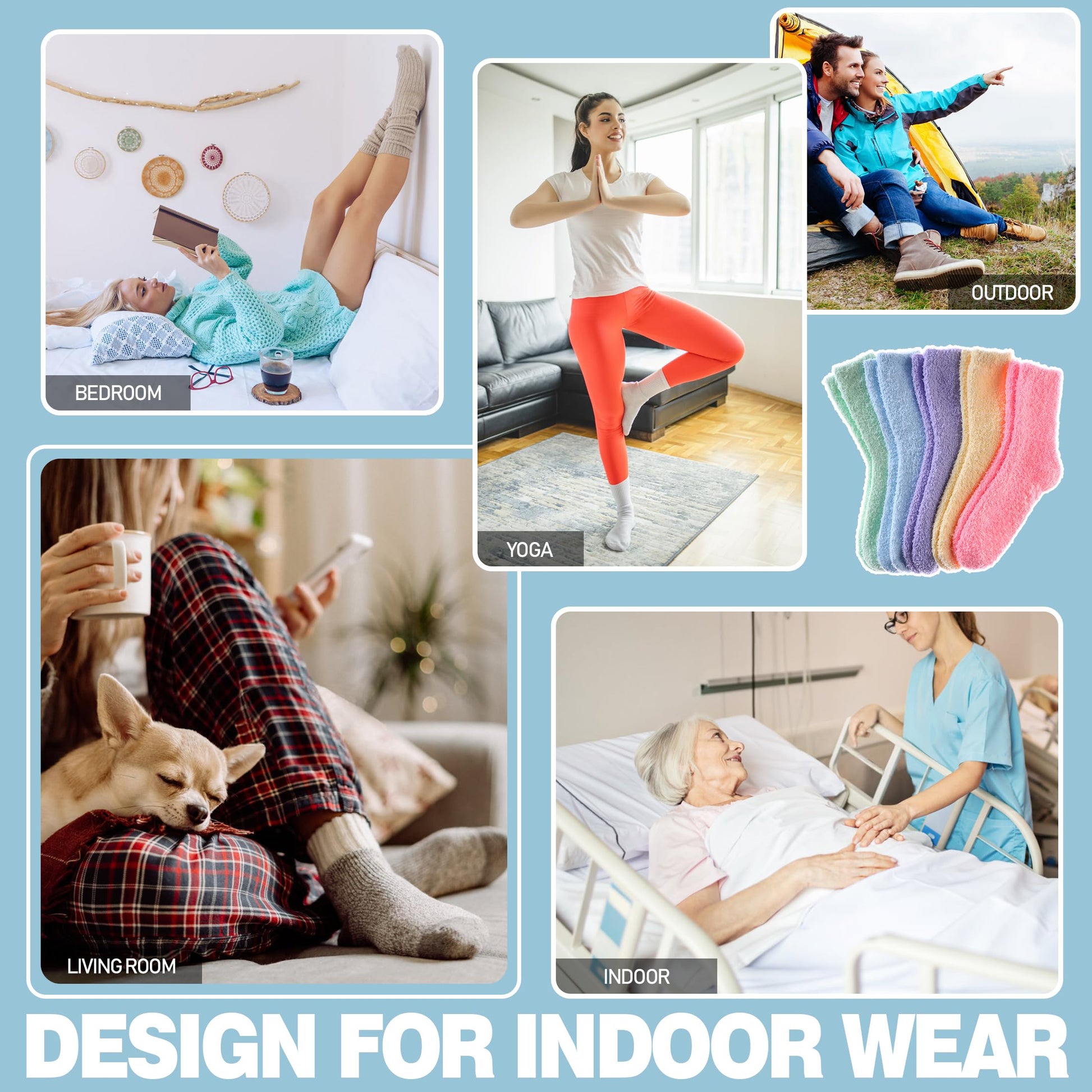 - NON SLIP SOCKS - The hospital socks for women have grips dotted at each sole of color fuzzy anti slip socks, offering excellent grip to prevent you from falling or losing balance while walking or running on smooth surfaces such as wood floors and tiles, everyone wears them for their comfort and security.