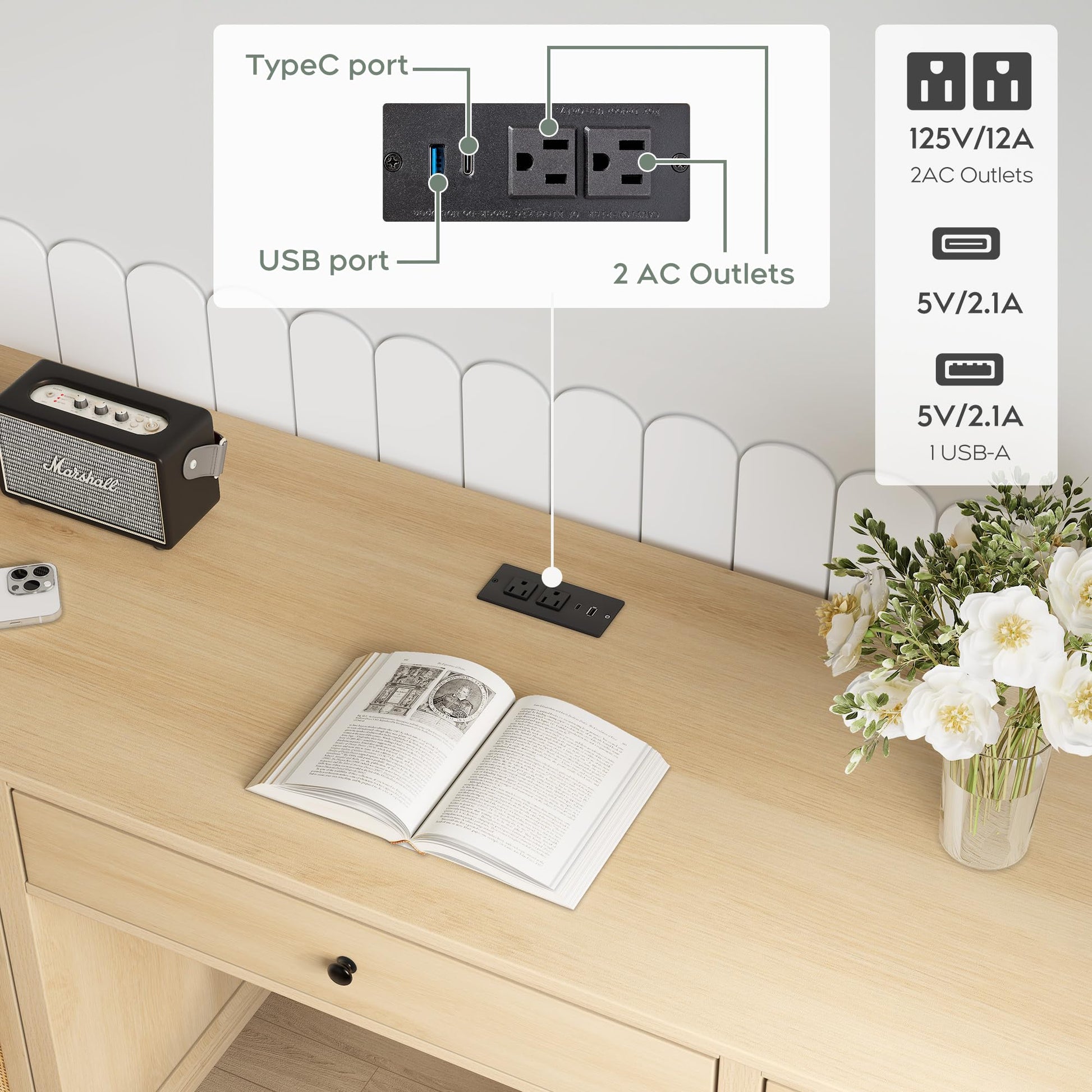 - 【Convenient Built-in Charging Station】: Our desk comes with a built-in charging station, including 1 USB port, 1 Type C port and 2 outlets, which can provide power for cell phones, laptops, desk lamps and more. The vintage-look desk is still very functional and makes home life more convenient. No need to buy a new socket separately, a charging station just for you, close at hand.
