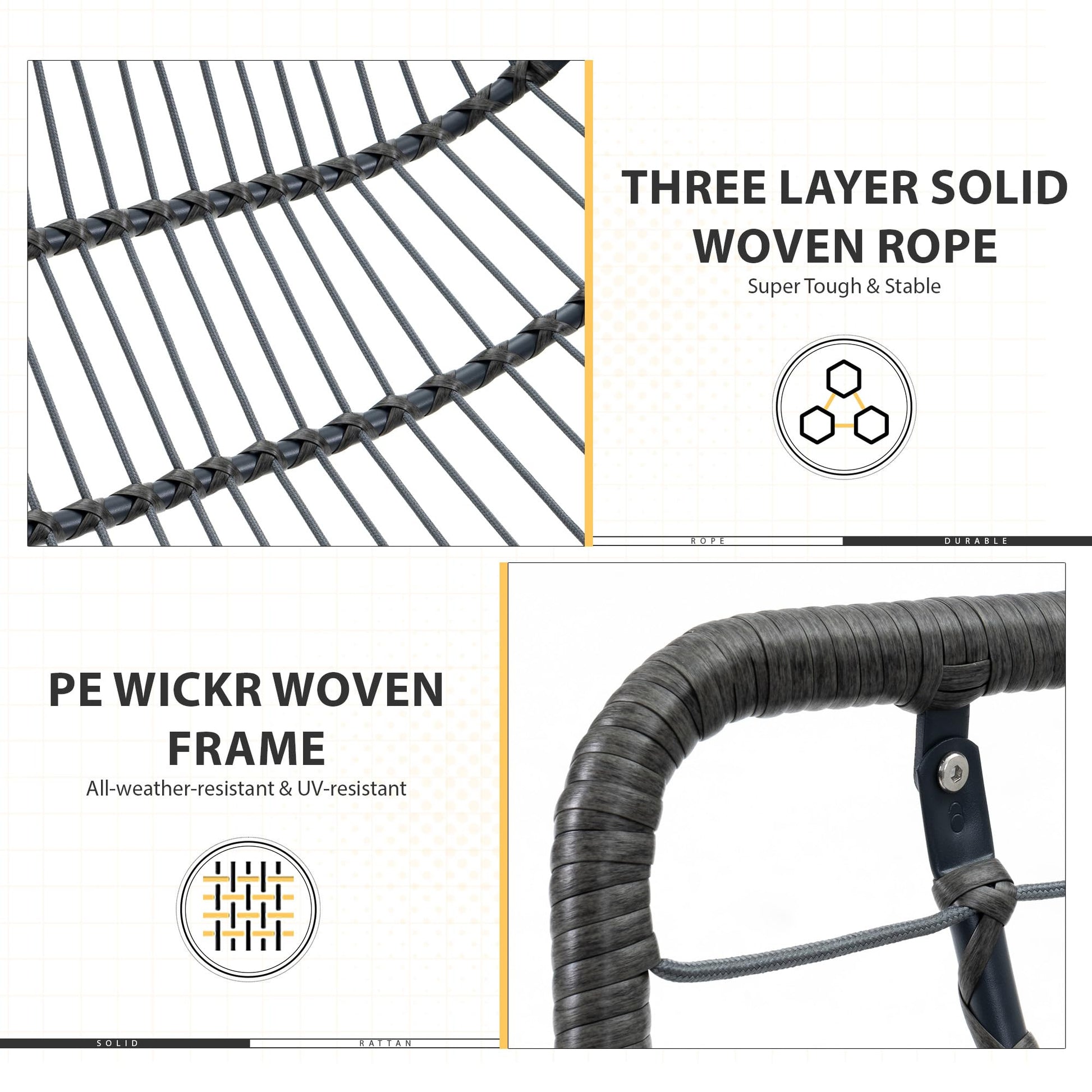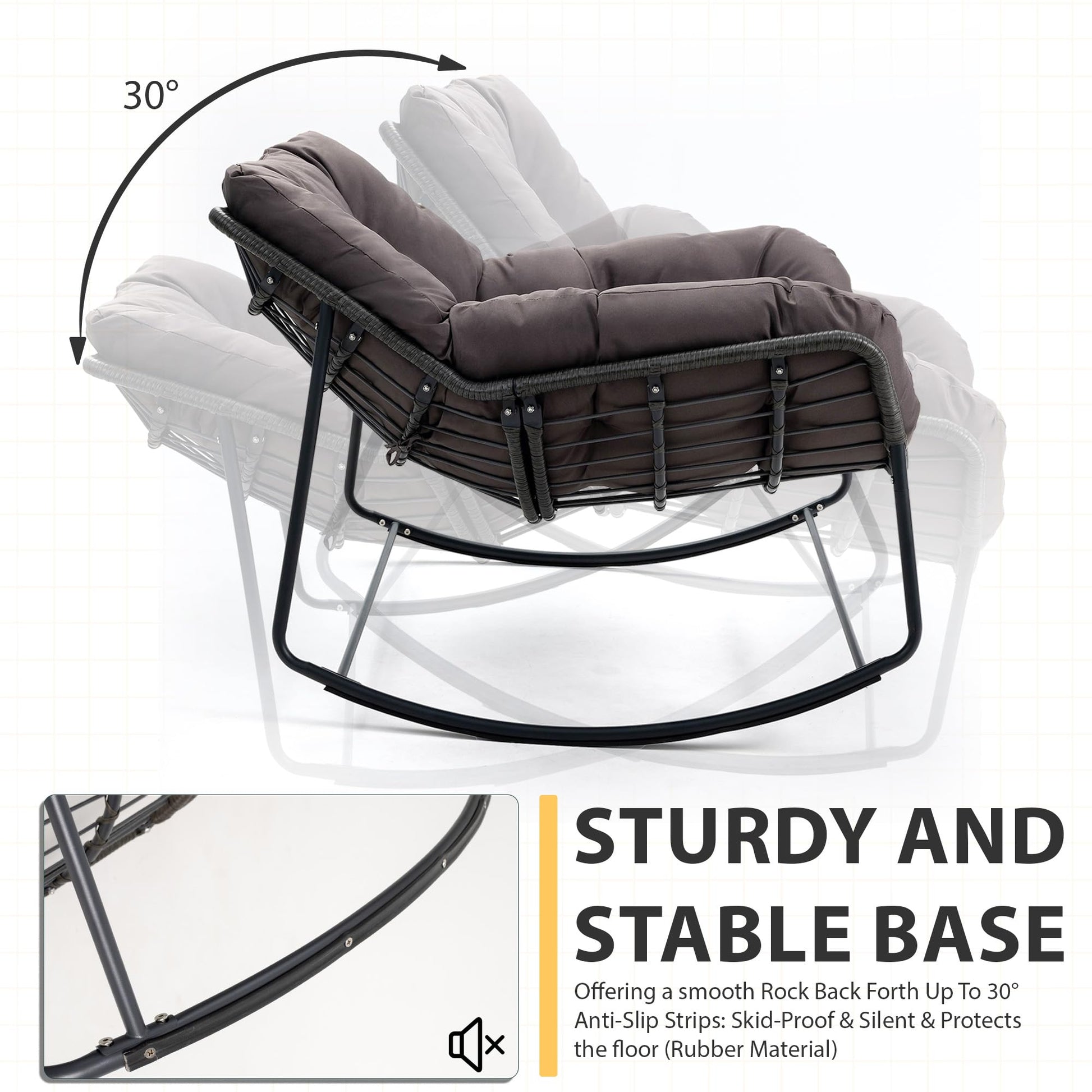Yechen Outdoor Indoor Papasan Rocking Chair, Wicker Cozy Chair with Cushion, Oversized Outdoor Patio Reading Chair, Egg Chairs for Bedroom/Living Room/Porch/Garden/Lawn, Charcoal Grey