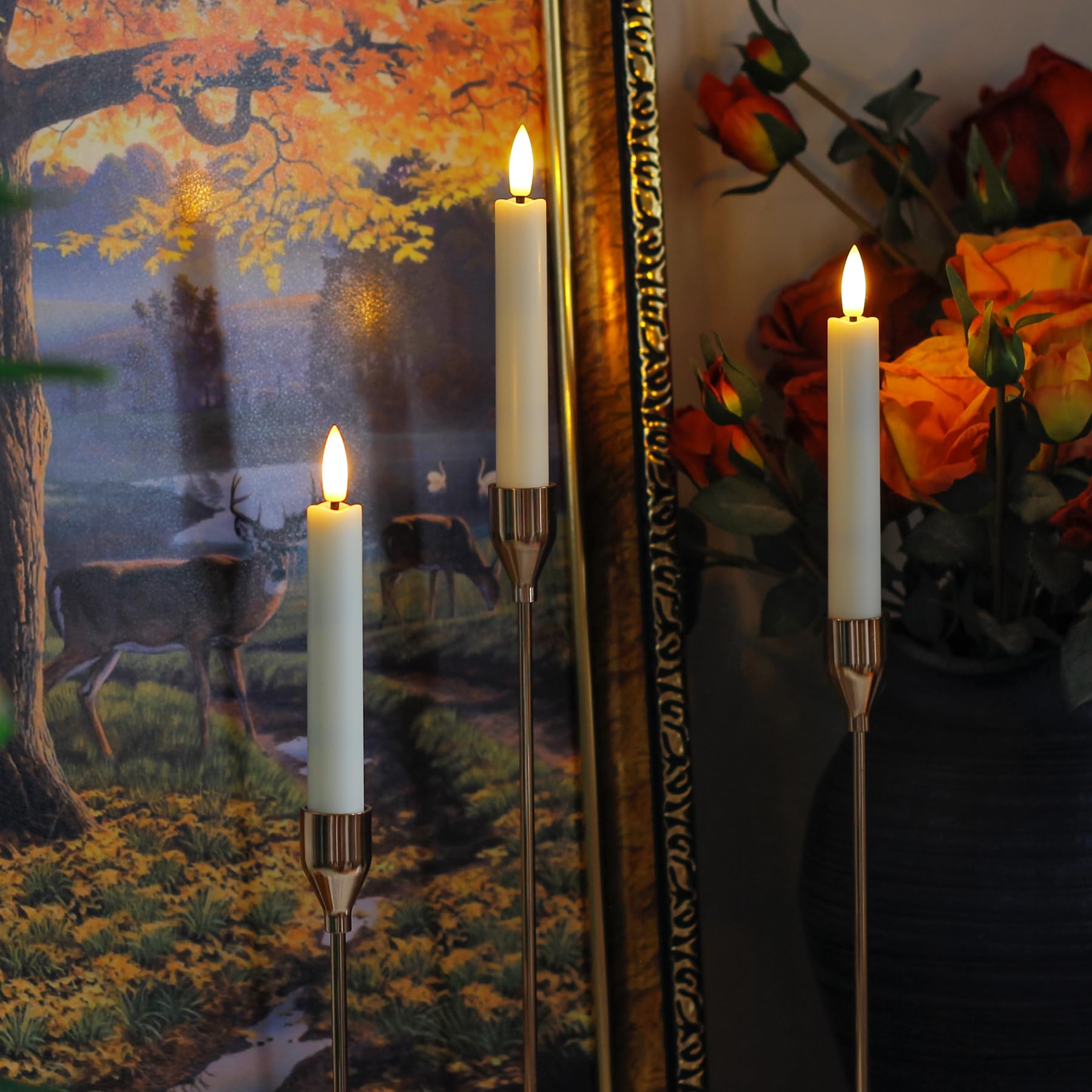 - 6.4 Inch and 3D-Wick: The 6.4" flameless taper candle is more suited for table and living room decor, allowing the candle to harmonize with your room. 3D-Wick allow the candle to look very realistic from a distance