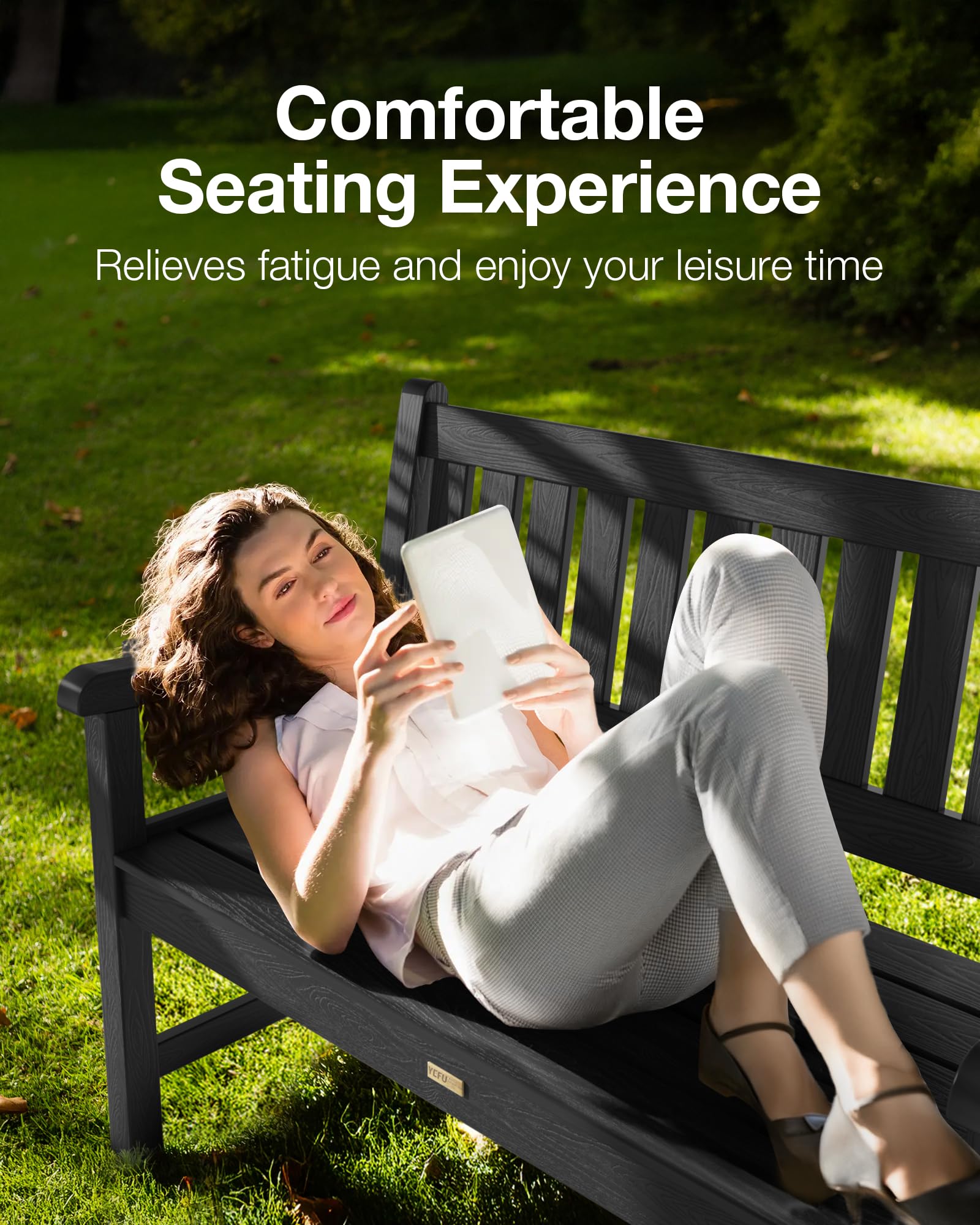 YEFU Outdoor Bench for Patio Waterproof: Heavy Duty 2-Person Garden Bench with 2 Cup Holders & Oversized Seating - HIPS Weatherproof Patio Benches for Front Porch Backyard Park, Black